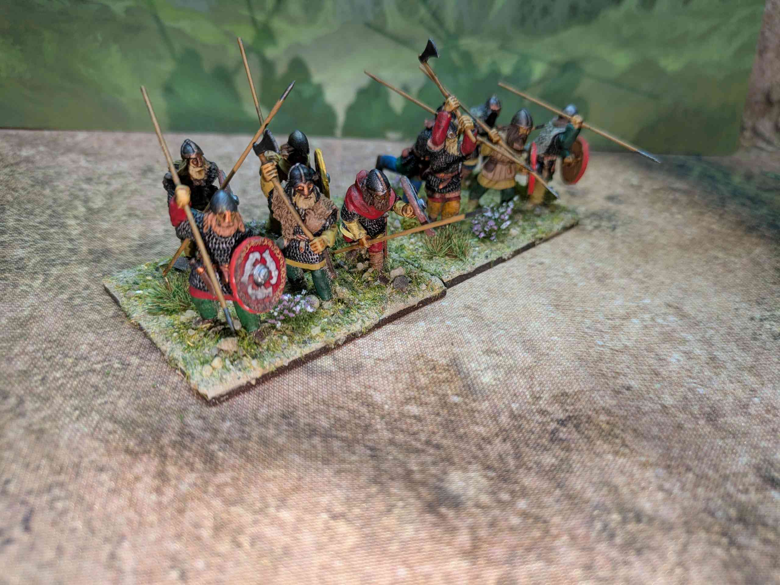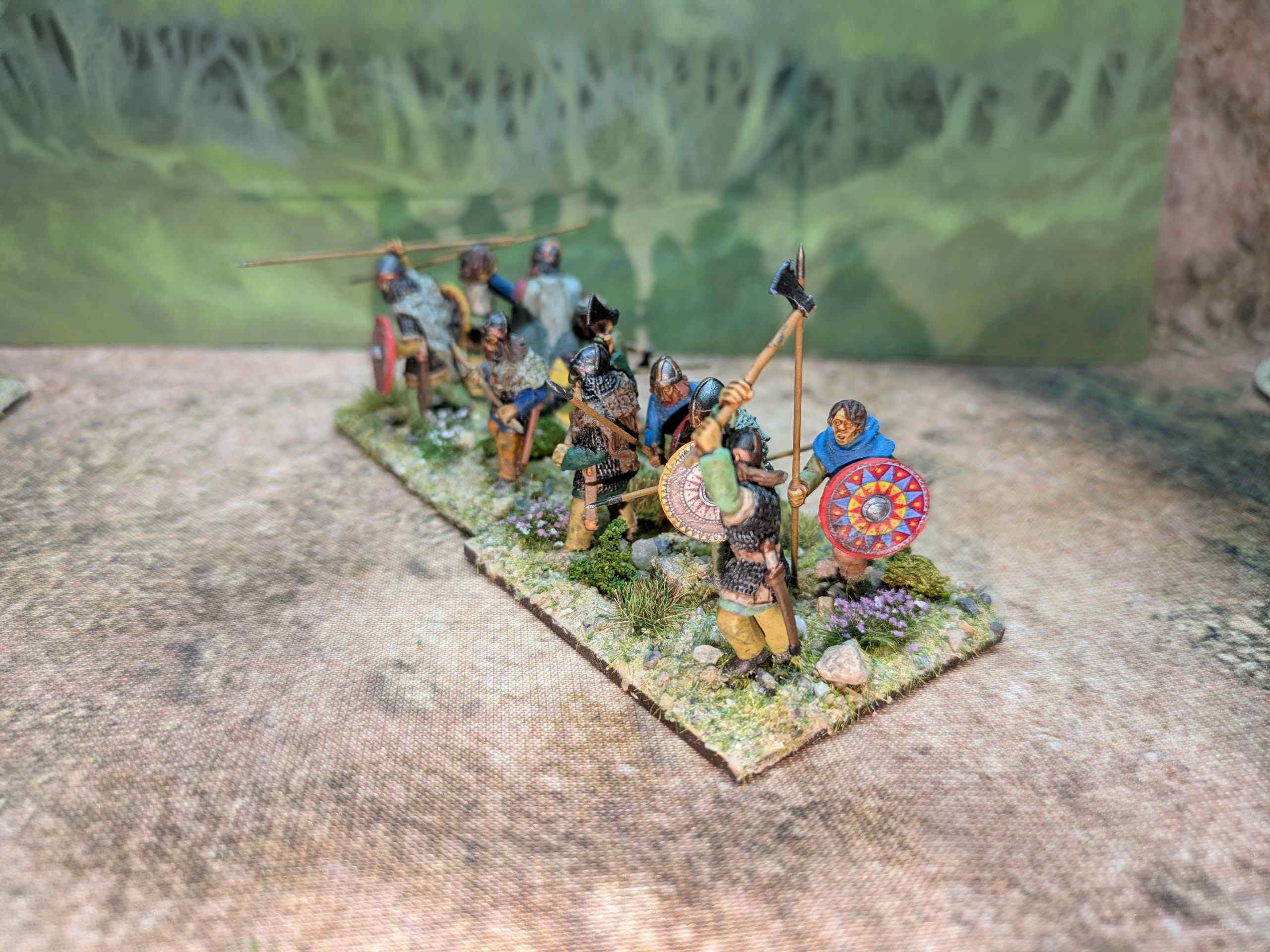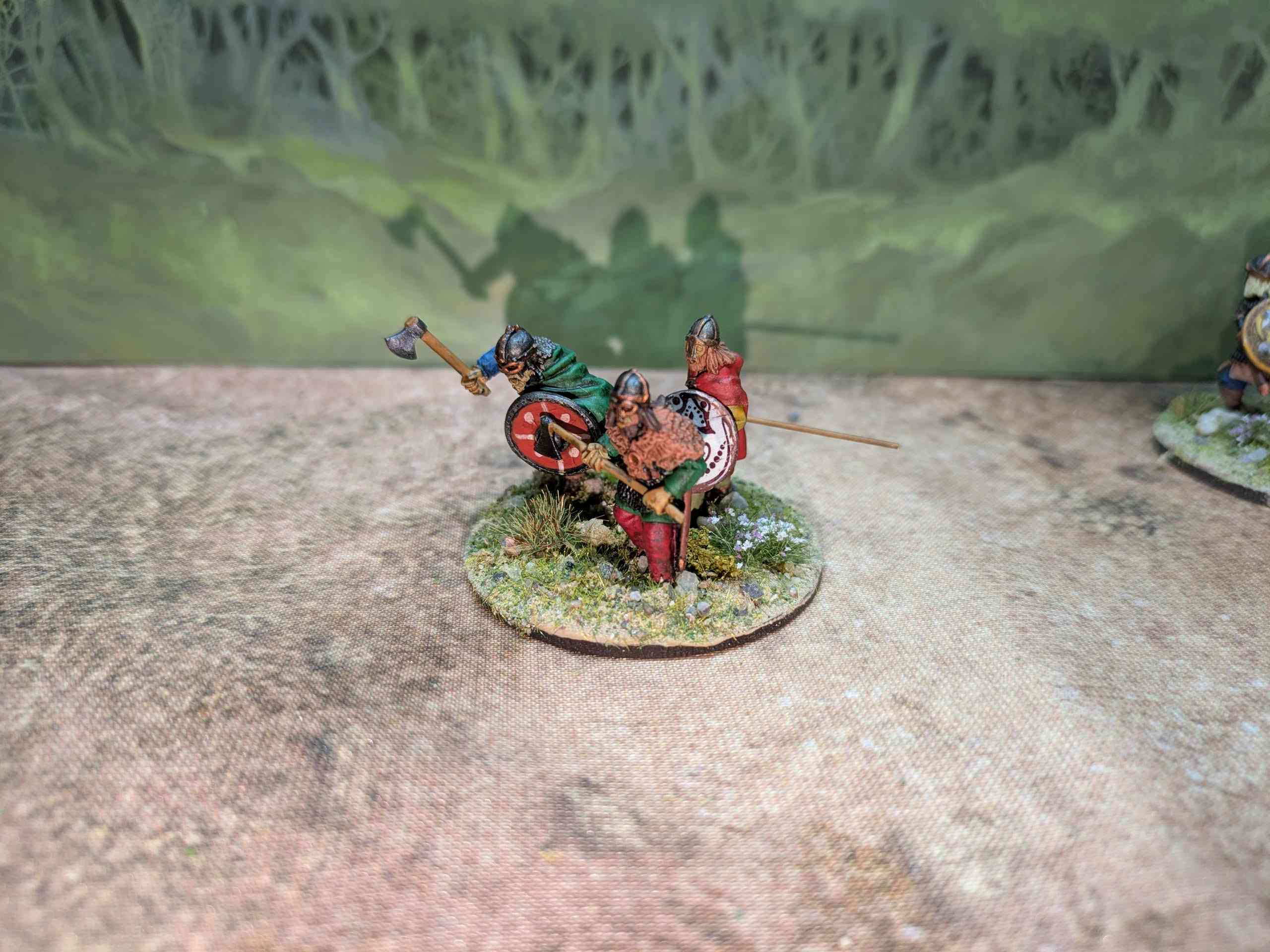 I also completed a dozen single based figures to be used in Pillage in particular (and sabot based for Midgard). These were needed as all the figures I had in the Saga Warband were in chain and therefore needed some lighter armoured people for fodder.