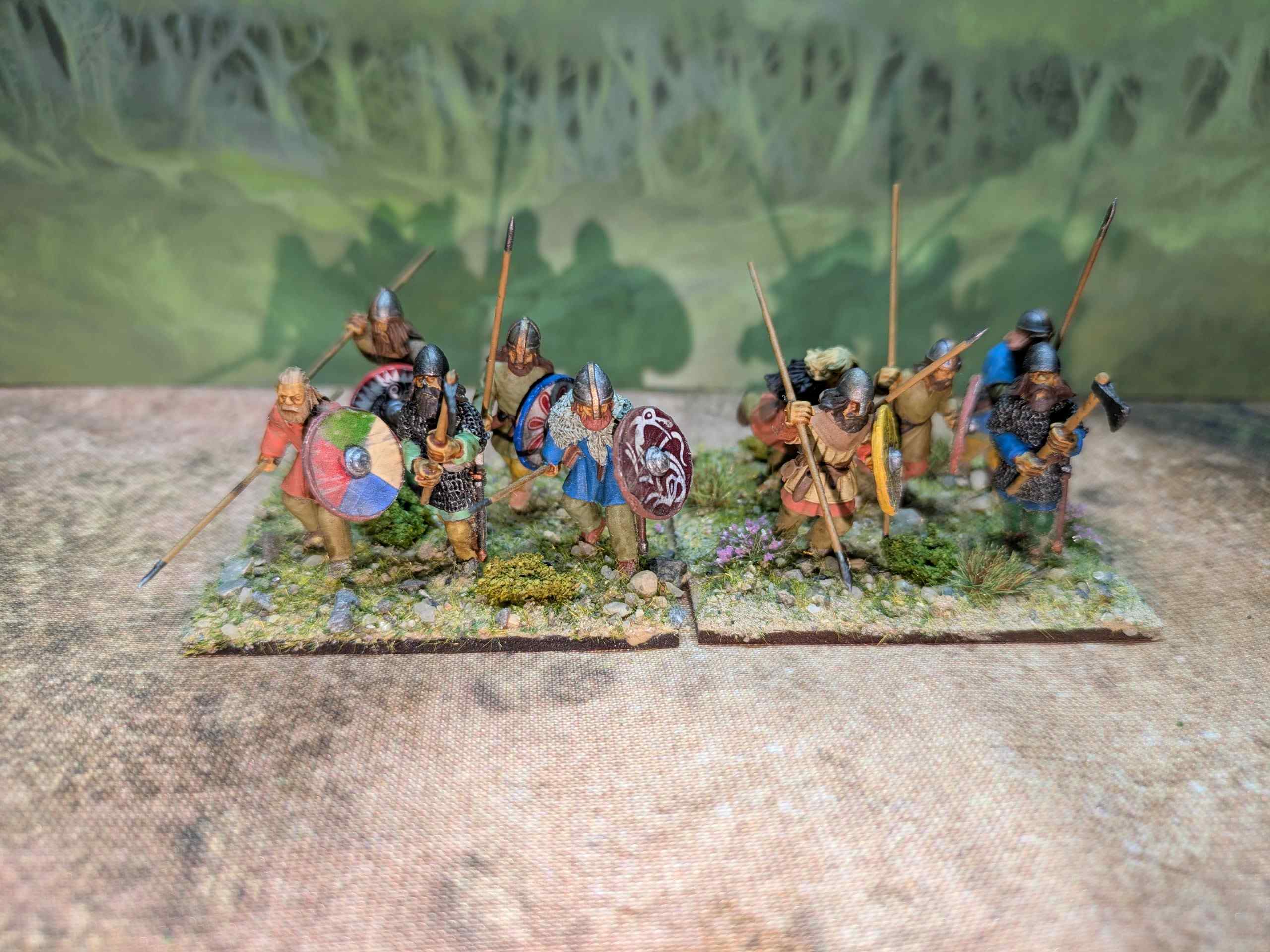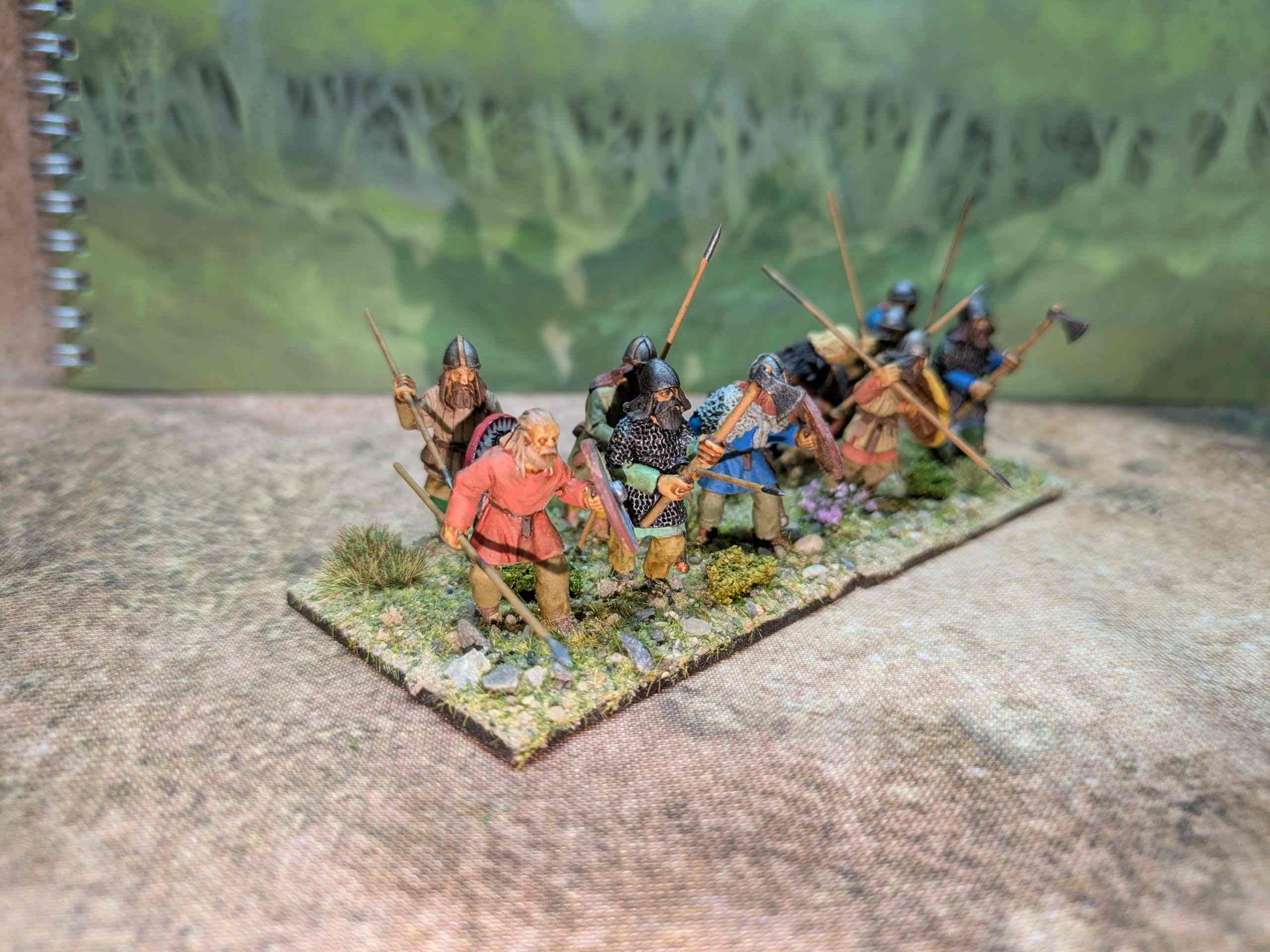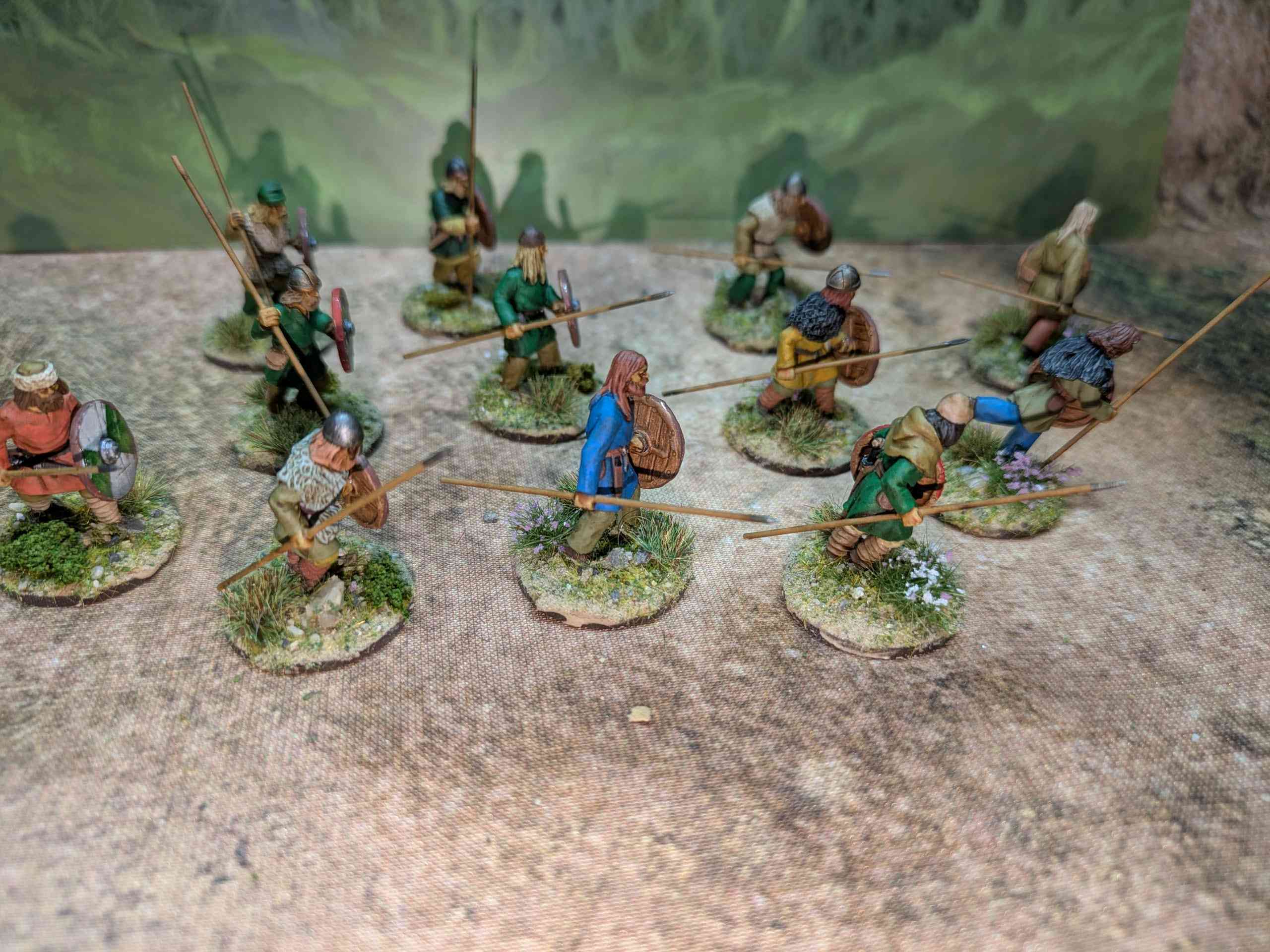 I also completed a dozen single based figures to be used in Pillage in particular (and sabot based for Midgard). These were needed as all the figures I had in the Saga Warband were in chain and therefore needed some lighter armoured people for fodder.