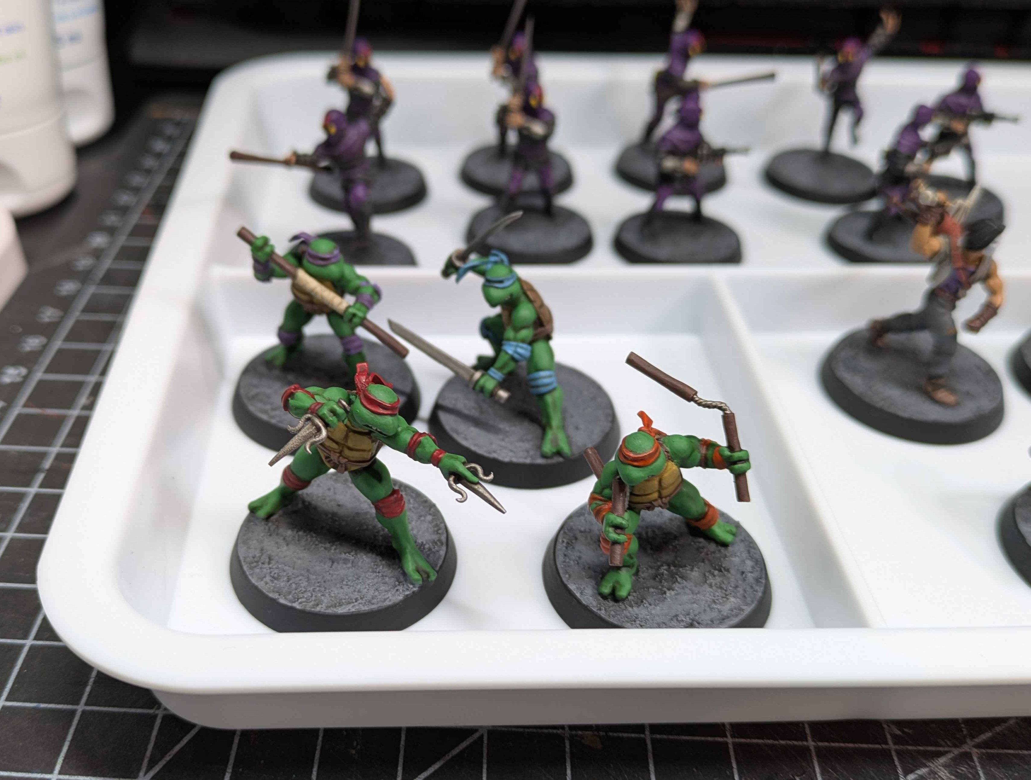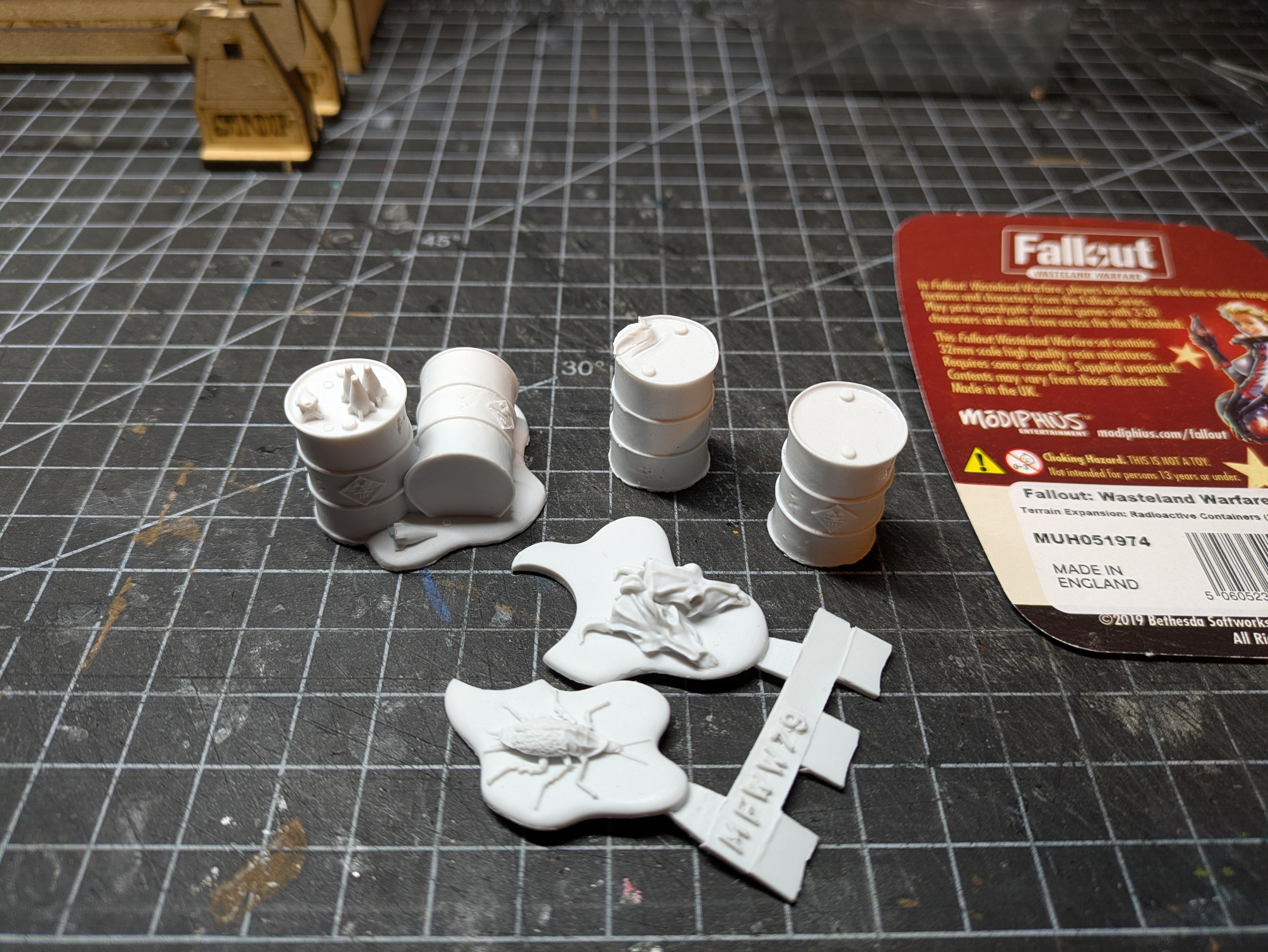 When I saw that the scenario was around the mutagen that created the turtles, I knew I had the perfect thing in the stash for objective markers. Last year at a show I paid far too much money for three radioactive crates from Modiphius. I made a little mould and cast some extras for this game… but I was impatient and ended up with bubbles. Don’t be like me. I’ll make more in the future to replace them but I wanted these good to go by this coming weekend.