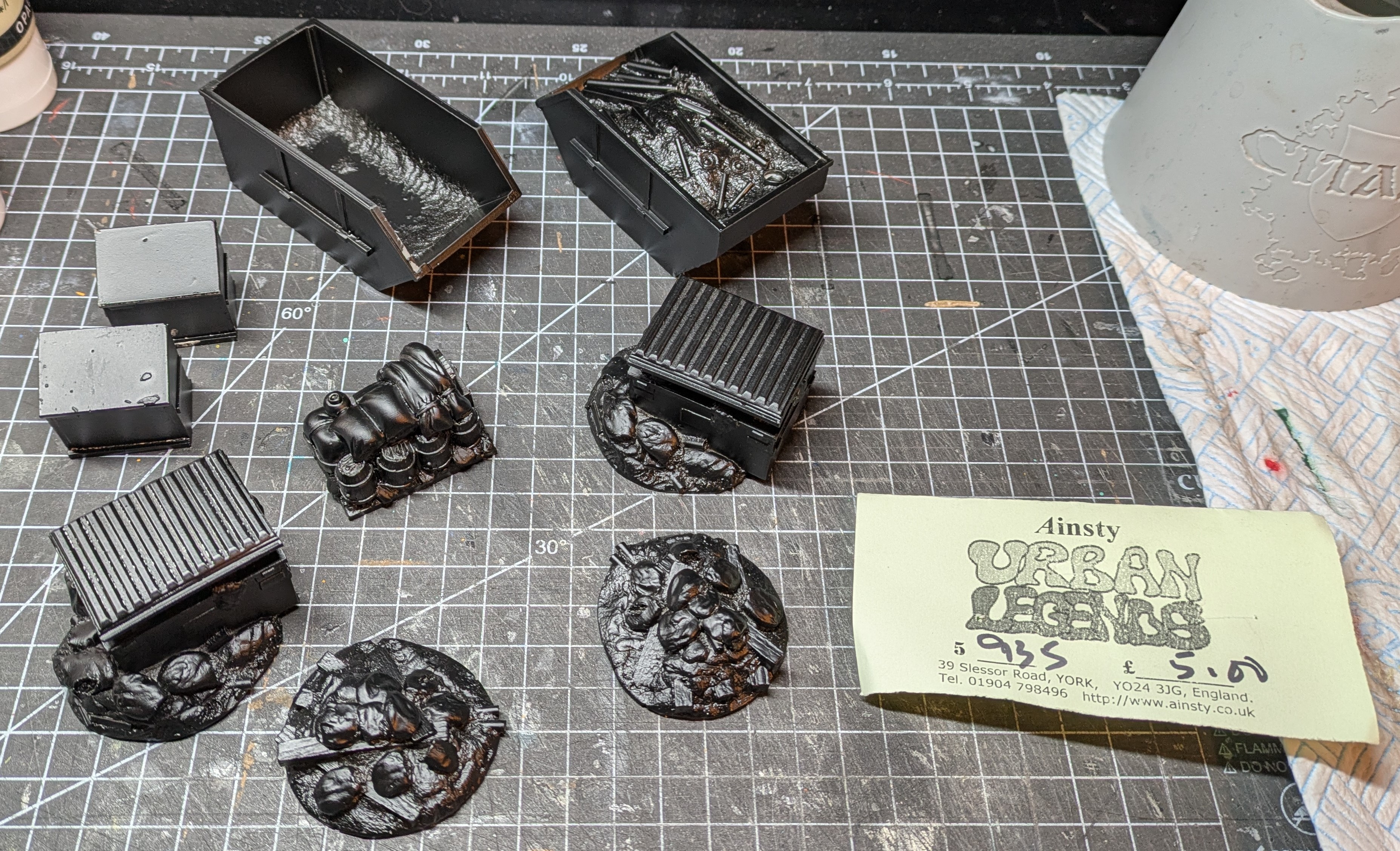 Digging around further I found a bunch of resin pieces that will work nicely for scatter terrain. I was given these by a friend who had them in his collection for years and realised they were just taking up space. He gave them to me probably six or seven years ago at this point… it’s time to do something with them! I added in some of the contents of this box of Walking Dead terrain too. I might come back for the cars later.