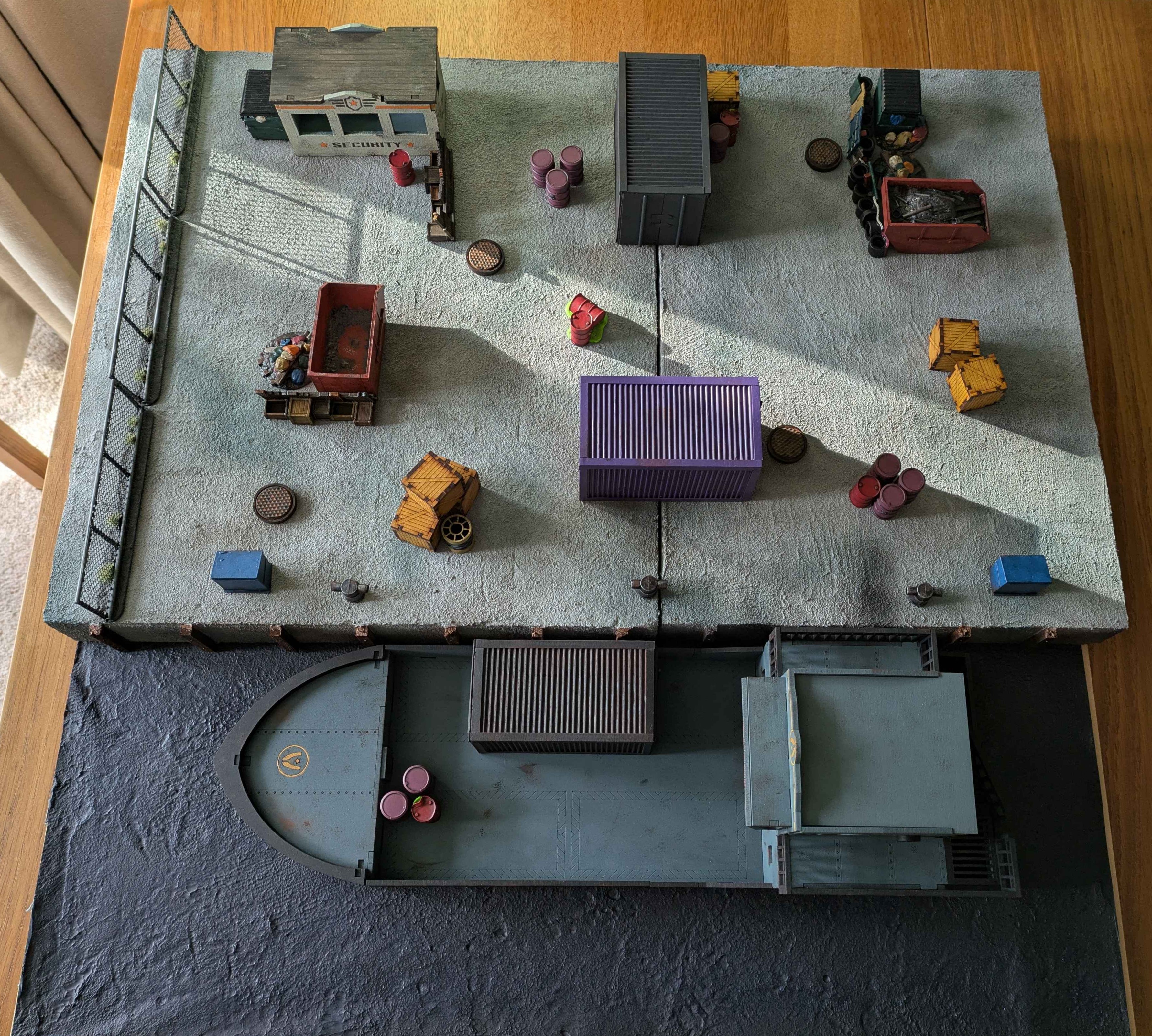 With that, the terrain portion of the project is done. When I started this I had no idea that I would build a table (and spend less than a tenner to do it). I don’t normally enjoy working on terrain and it has definitely had moments when it has felt like a chore but I’m really happy with it overall. Everything except the platforms, mat and ship fit into a 4l Really Useful Box so it will be easy enough to store.