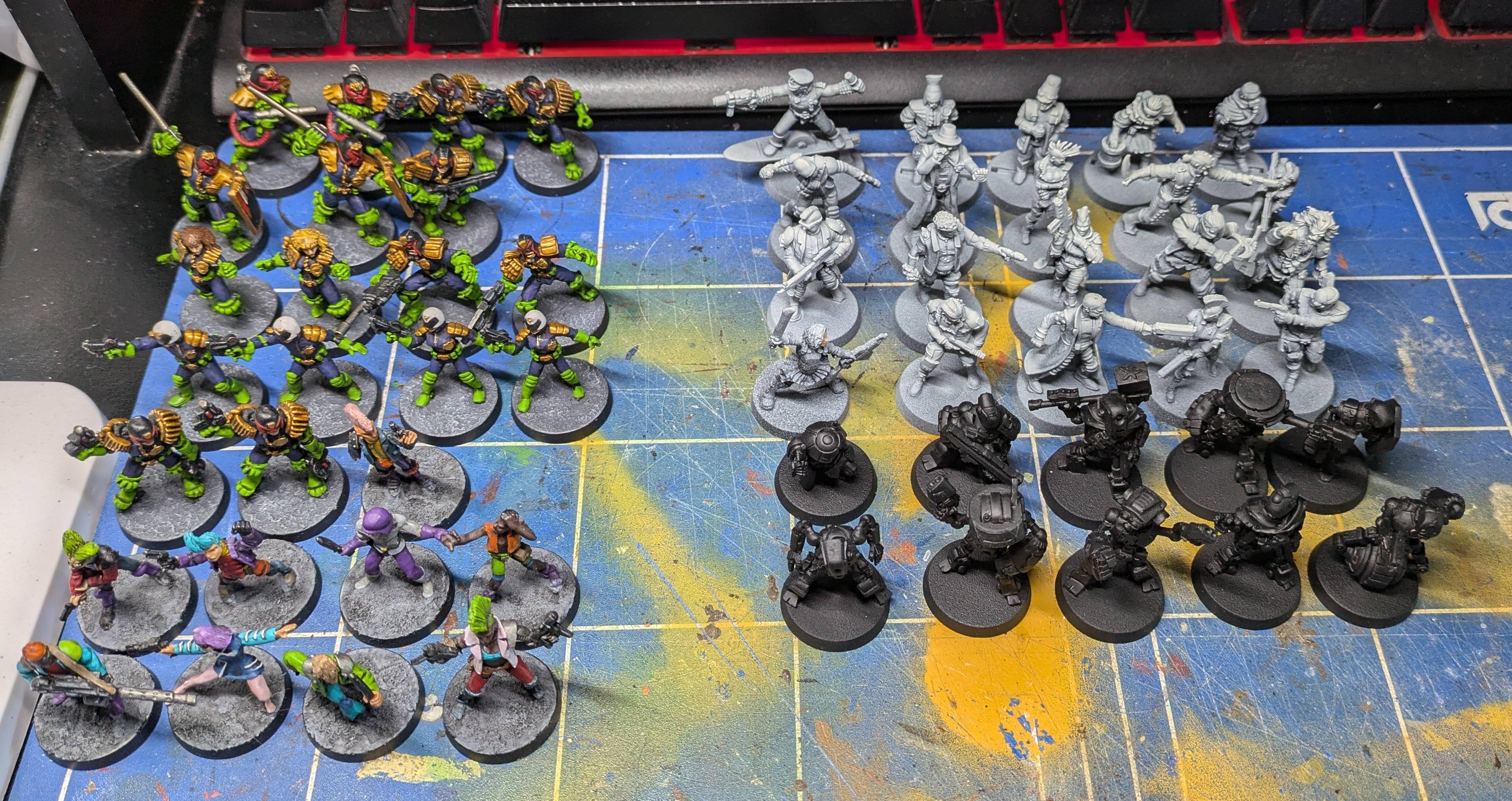 I picked up some of the new Warlord resin models to add into the original Mongoose/Warlord metals from the Kickstarter forever ago. That Warlord resin can get in the bin, I don’t think I’ll be buying more of that. The rest of the models are a mixture of Diehard, Crooked Dice and Bad Squiddo.