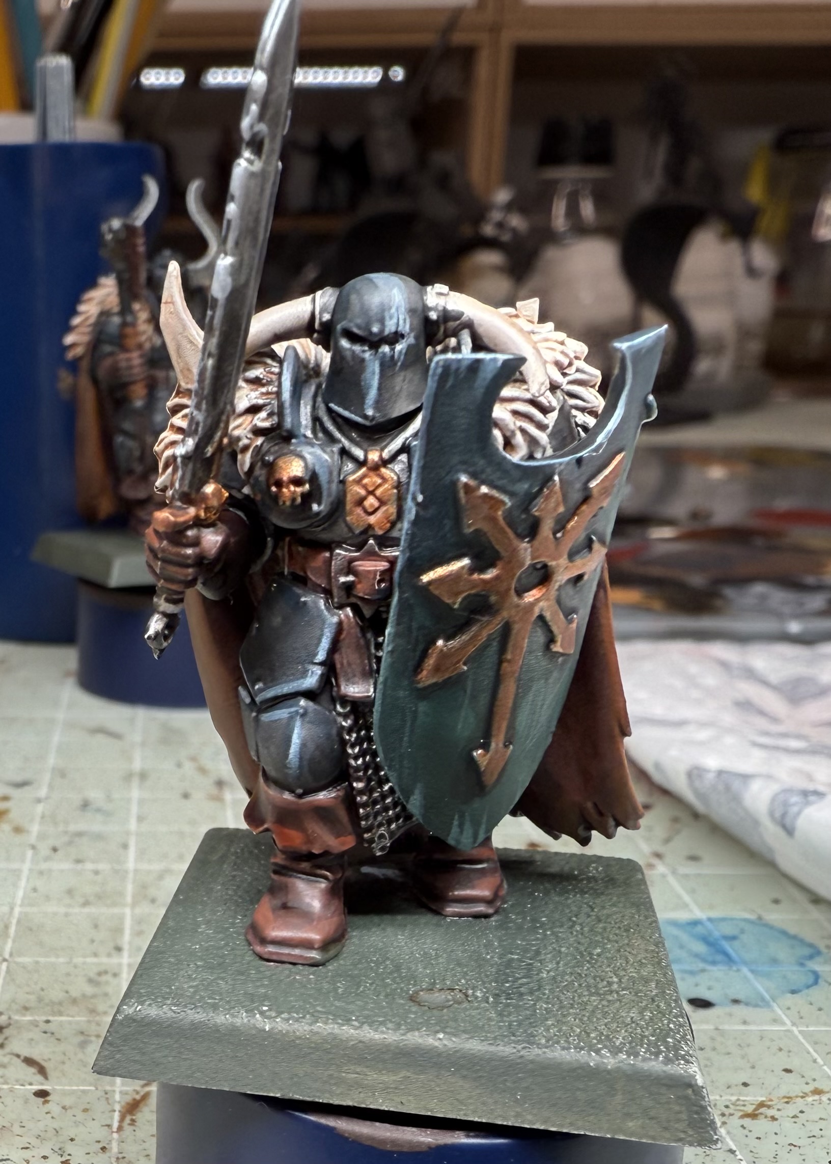 I wanted to try out the Army Painter John Blanche masterclass sets. No better miniatures to paint in this style than Chaos Warriors.
