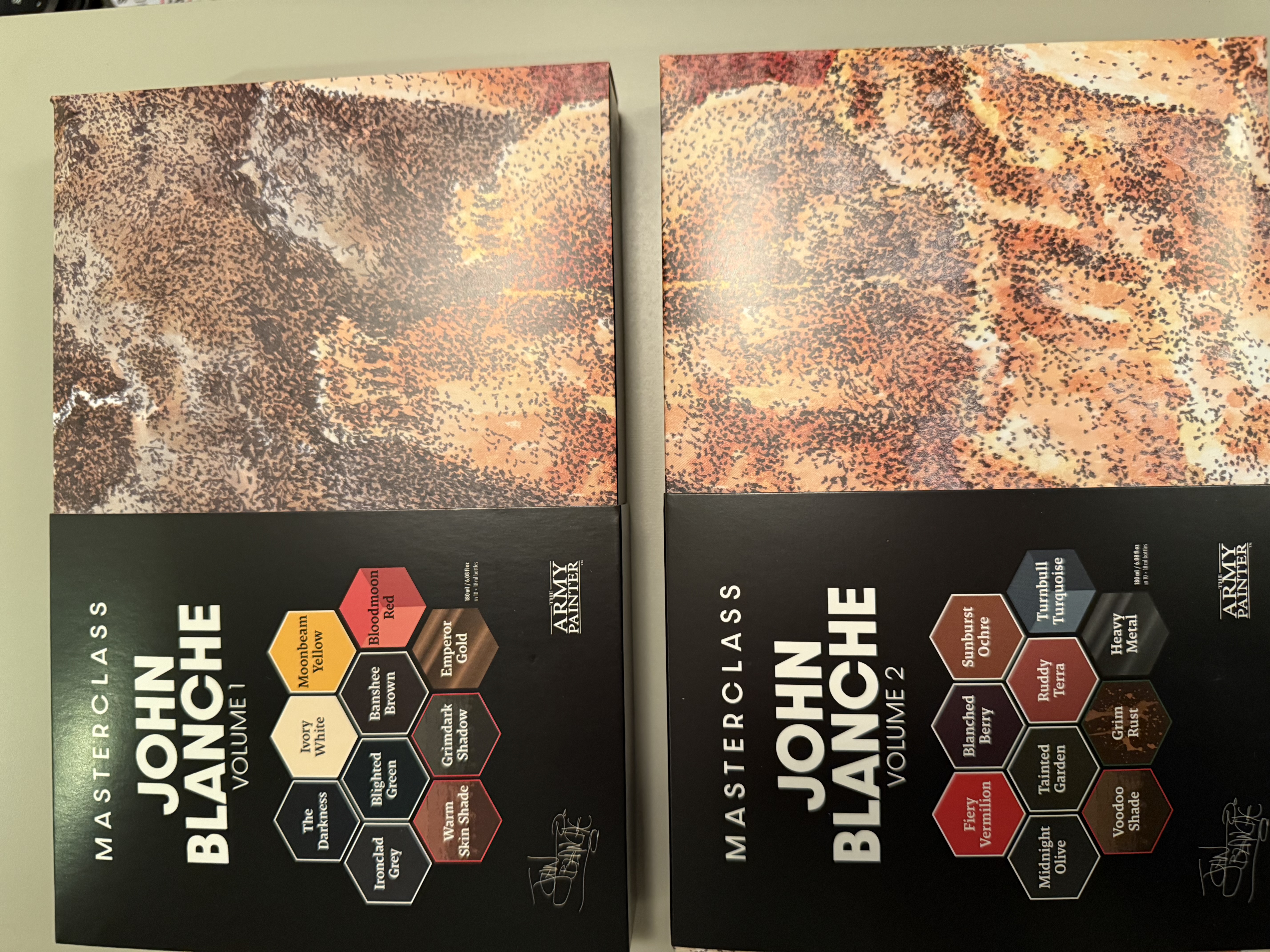 After completing a full regiment, I got to say the paint sets are amazing. The new Army Painter paints are great for serial painting and the colours for the John Blanche sets are so well picked, which is of course no wonder as it was done by the man himself. I also wholeheartedly recommend to try painting with a limited palette.