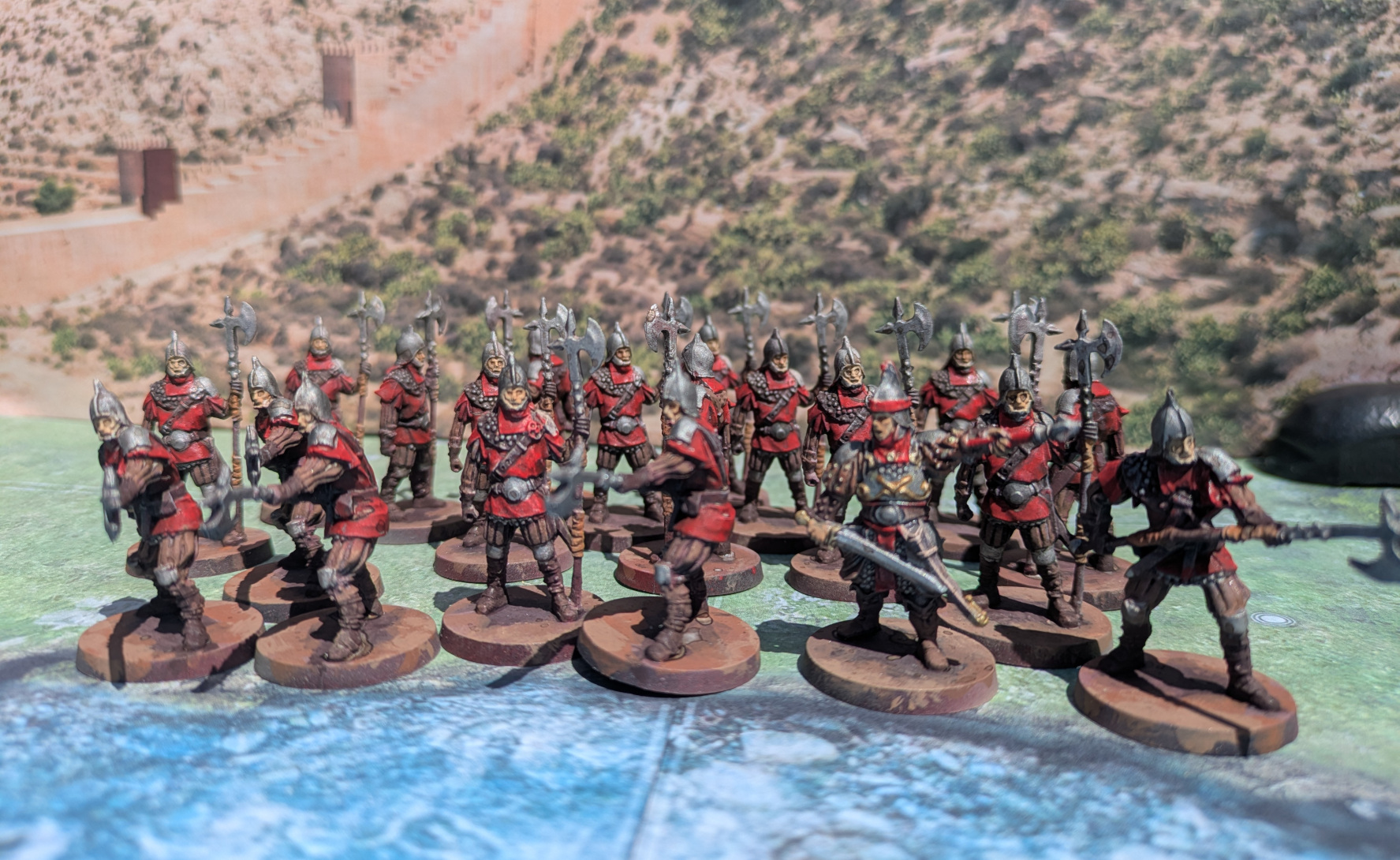 These guys have been sitting on my desk for almost a year now. Obviously not a great year for mini painting but the worlds issues swept aside it was time to clear the table. I kept reminding myself these are simply game pieces and Conan’s crew will ensure they aren’t long on the table so stopped fussing. I also skipped base edging coz the game requires adding coloured inserts anyway. Table now cleared I’m looking to focus on character type minis and something a bit more interesting.