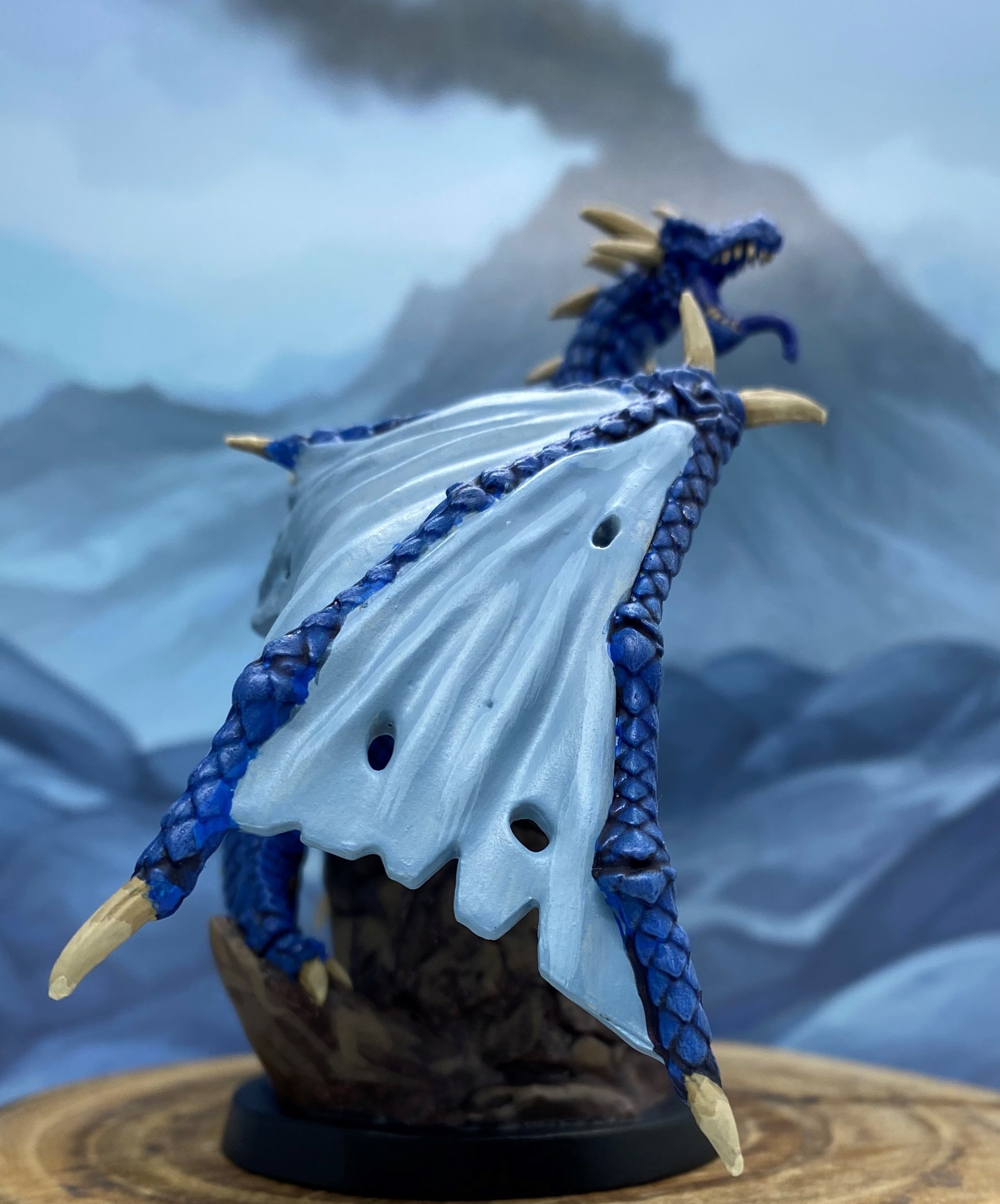 The Ghost Dragon wings were painted white scar, and then highlighted with more and more lothern blue being added in.