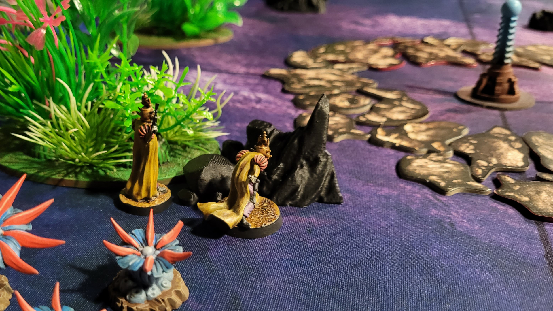 In the spirit of all games being miniatures agnostic, I’ve also borrowed a few tentacles from the Monolith Conan board game to use with the Lurking Horror strategy card, which will turn seemingly innocent pools of water into deadly traps. Hopefully.