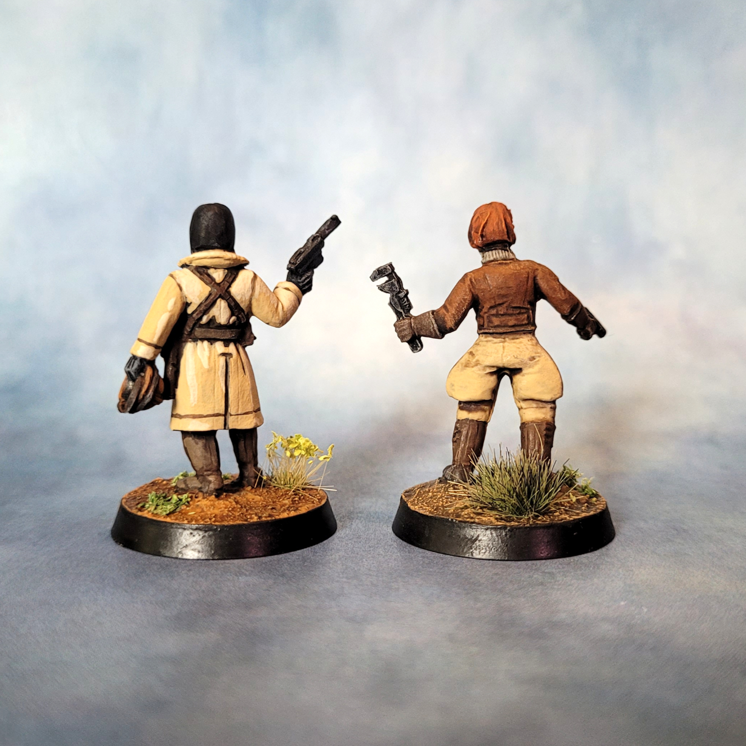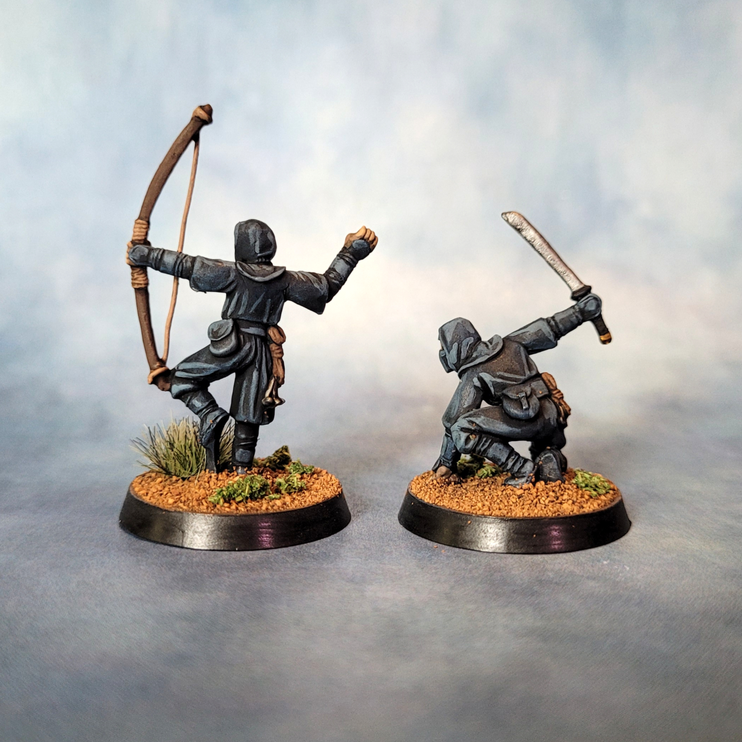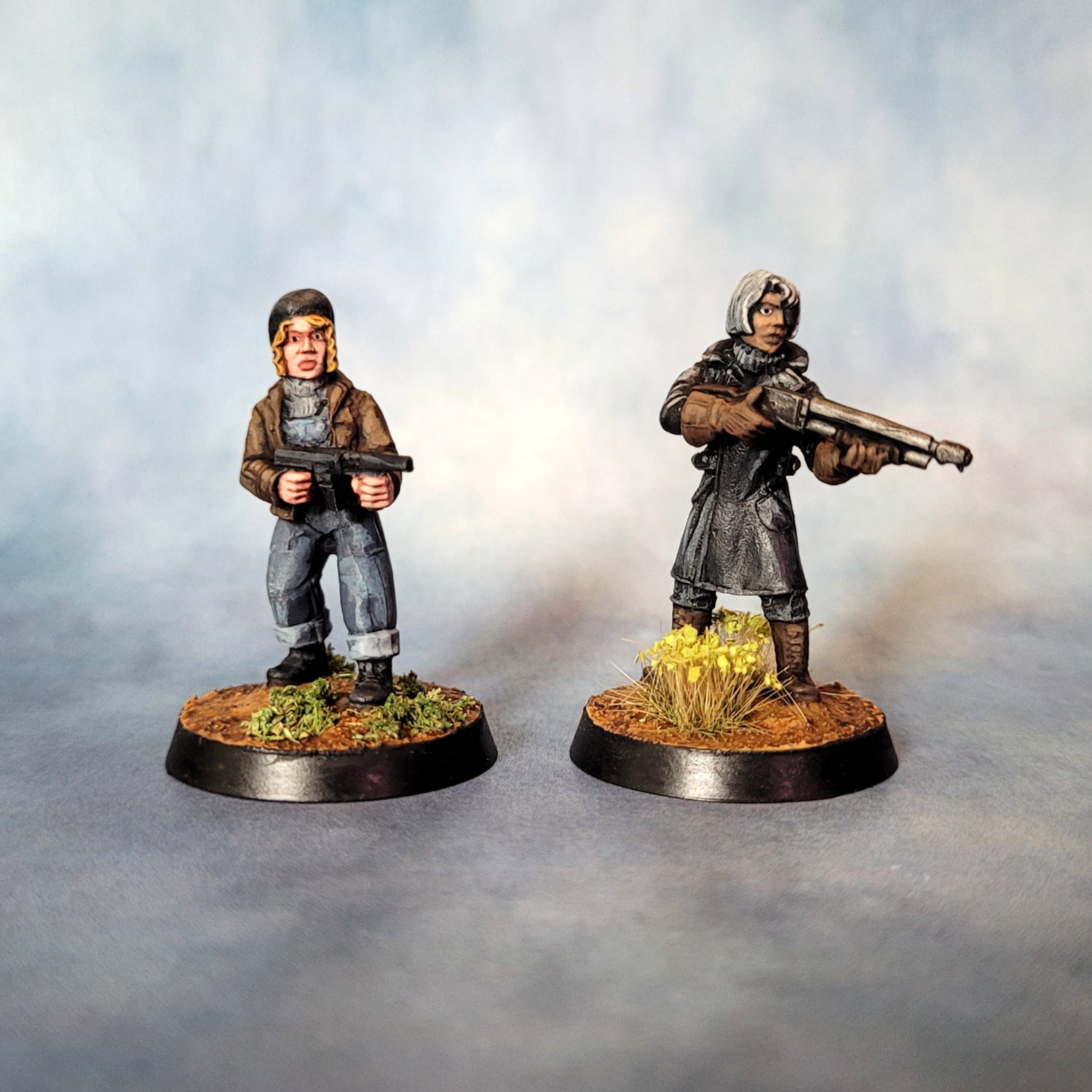 I painted these with a mixture of styles and techniques. For most of them I was leaning into the Kevin Dallimore triad method — I’ve read two of his books on painting and I think I’ve got my head around what he’s doing. I’m finding the technique particularly useful for faces and hands.