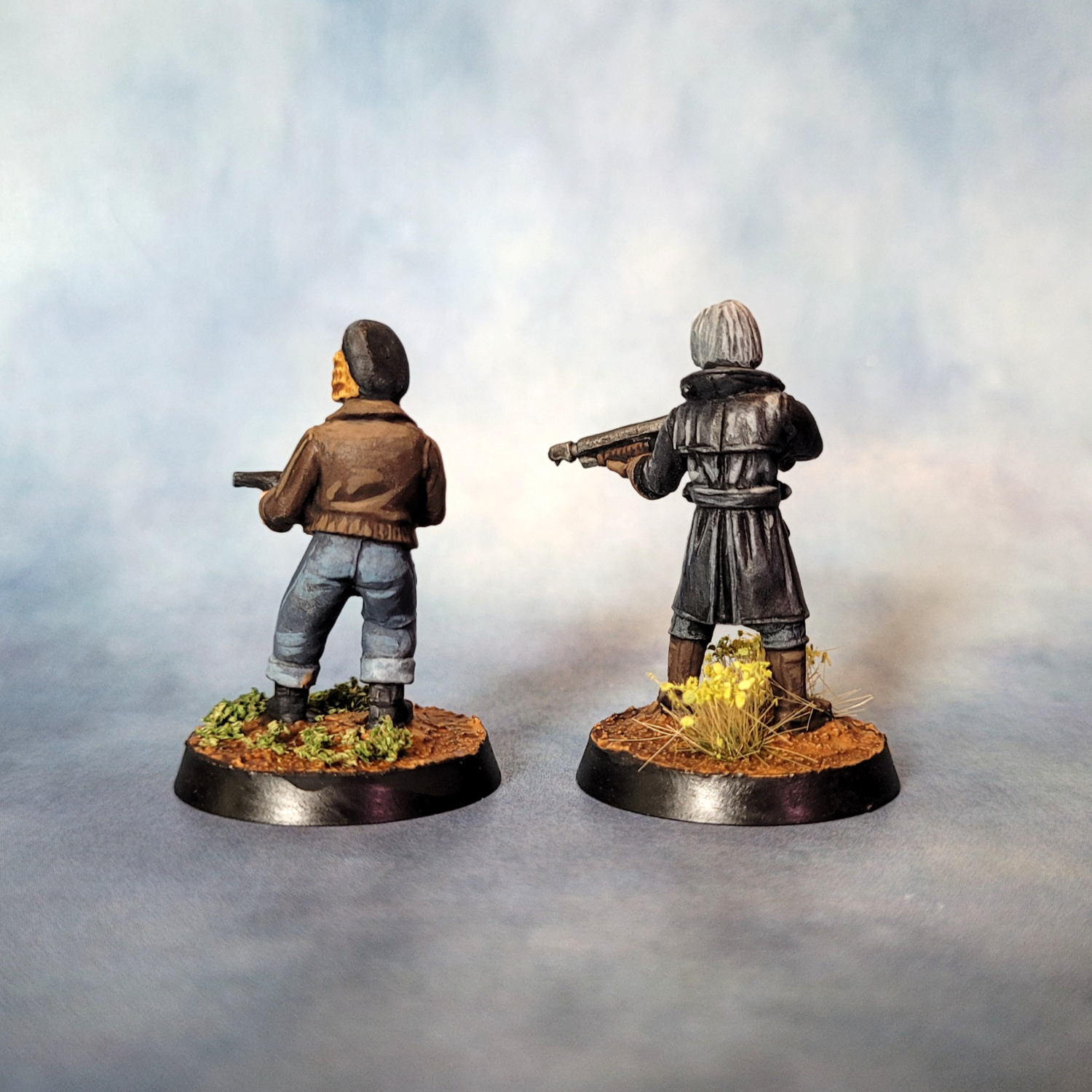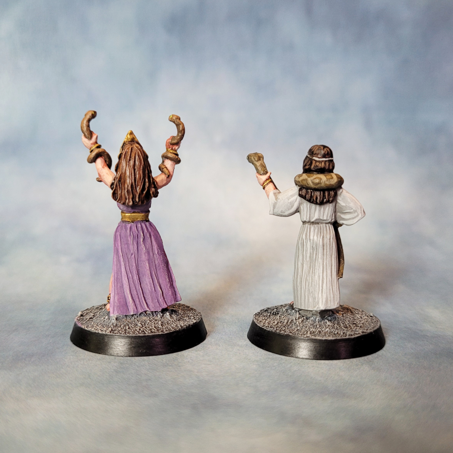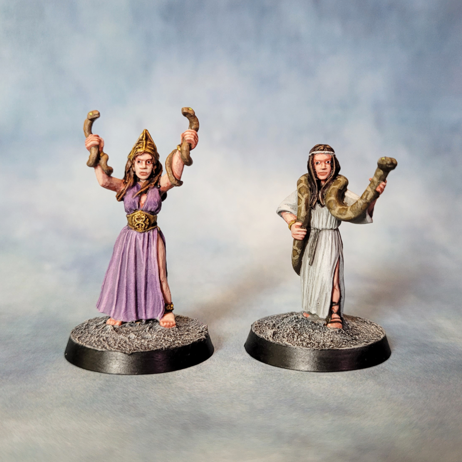 I painted these with a mixture of styles and techniques. For most of them I was leaning into the Kevin Dallimore triad method — I’ve read two of his books on painting and I think I’ve got my head around what he’s doing. I’m finding the technique particularly useful for faces and hands.