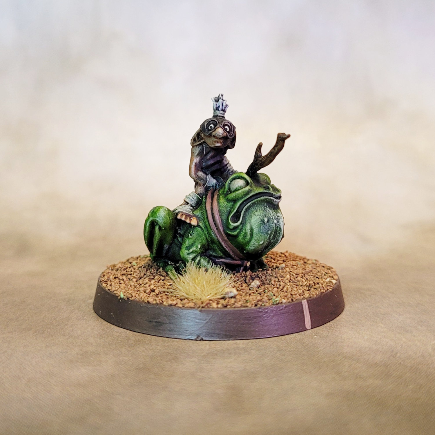 Joseph McCullough and Osprey Games snuck a little bonus into the back of the Hairfoot Jousting rule book — Wartnose Jousting, a re-skin of the game with Goblins and…let’s call them less charming critters replacing the jolly halflings and their fluffy mounts.