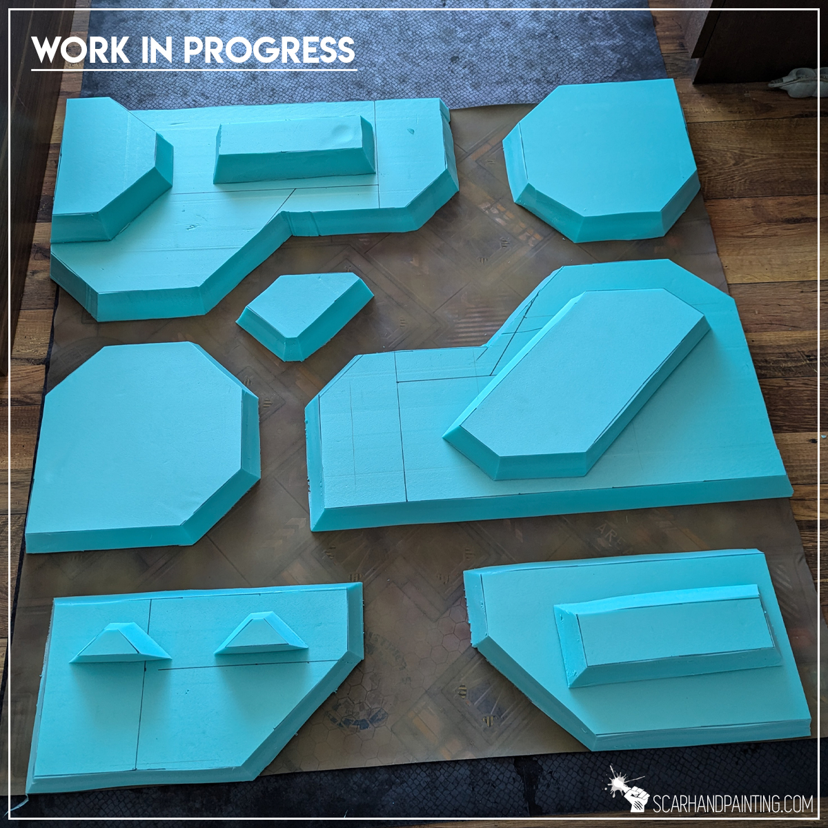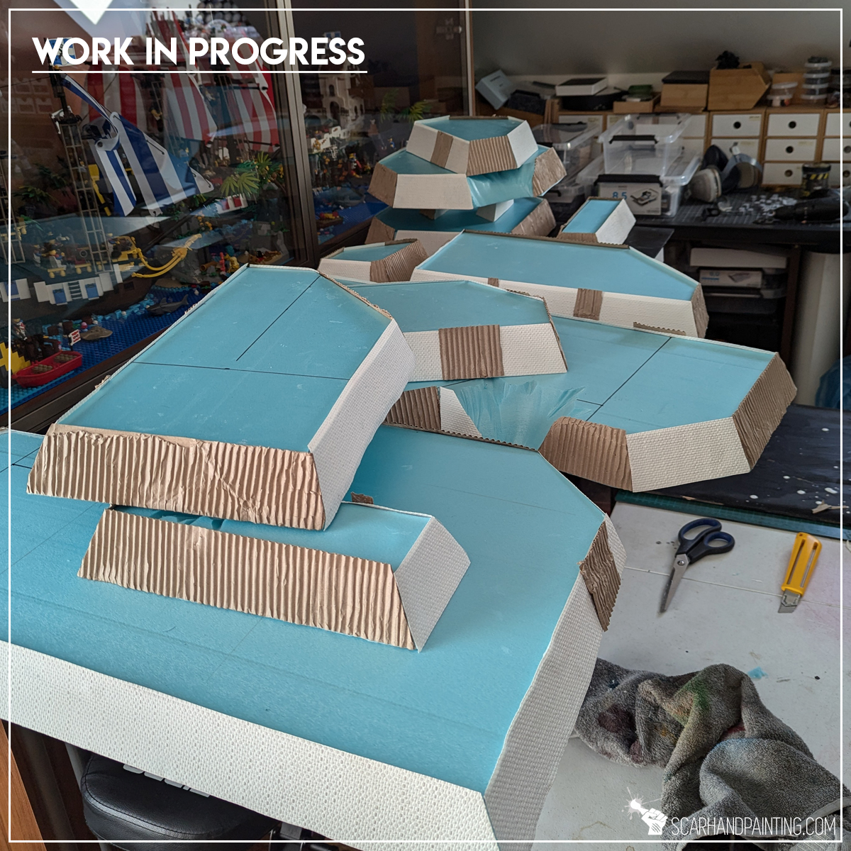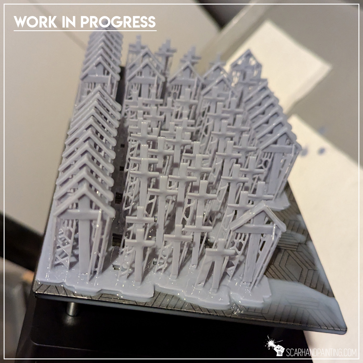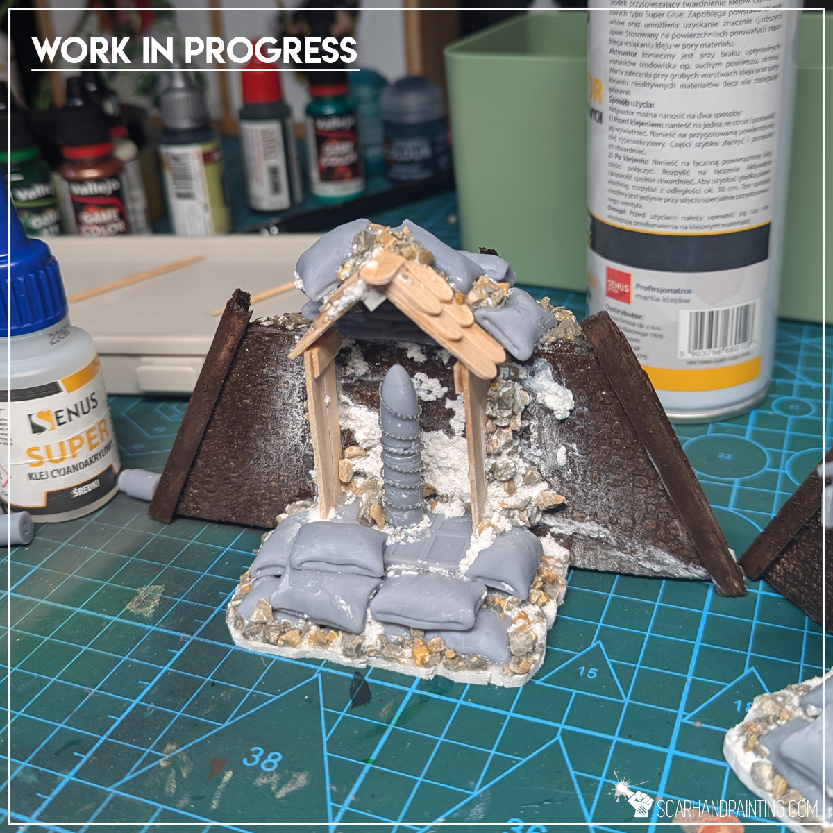 Fortunately there’s plenty of inspiration online (something that kept feeding my lust for a Trench Crusade board). I’ve ordered some styro-foam, six hundred stirring sticks, textured wallpaper, got a few STL files and a few days back I started cooking.