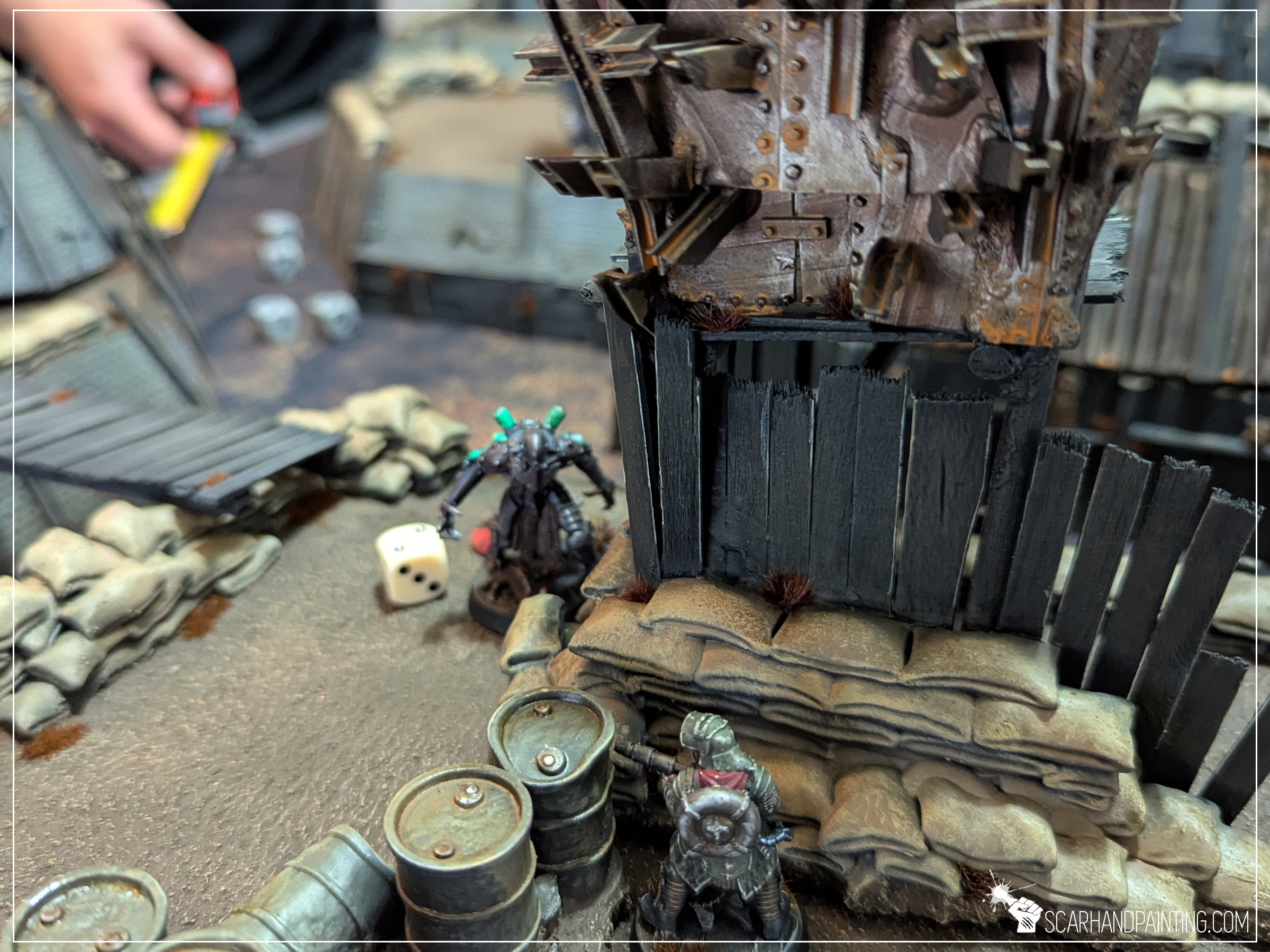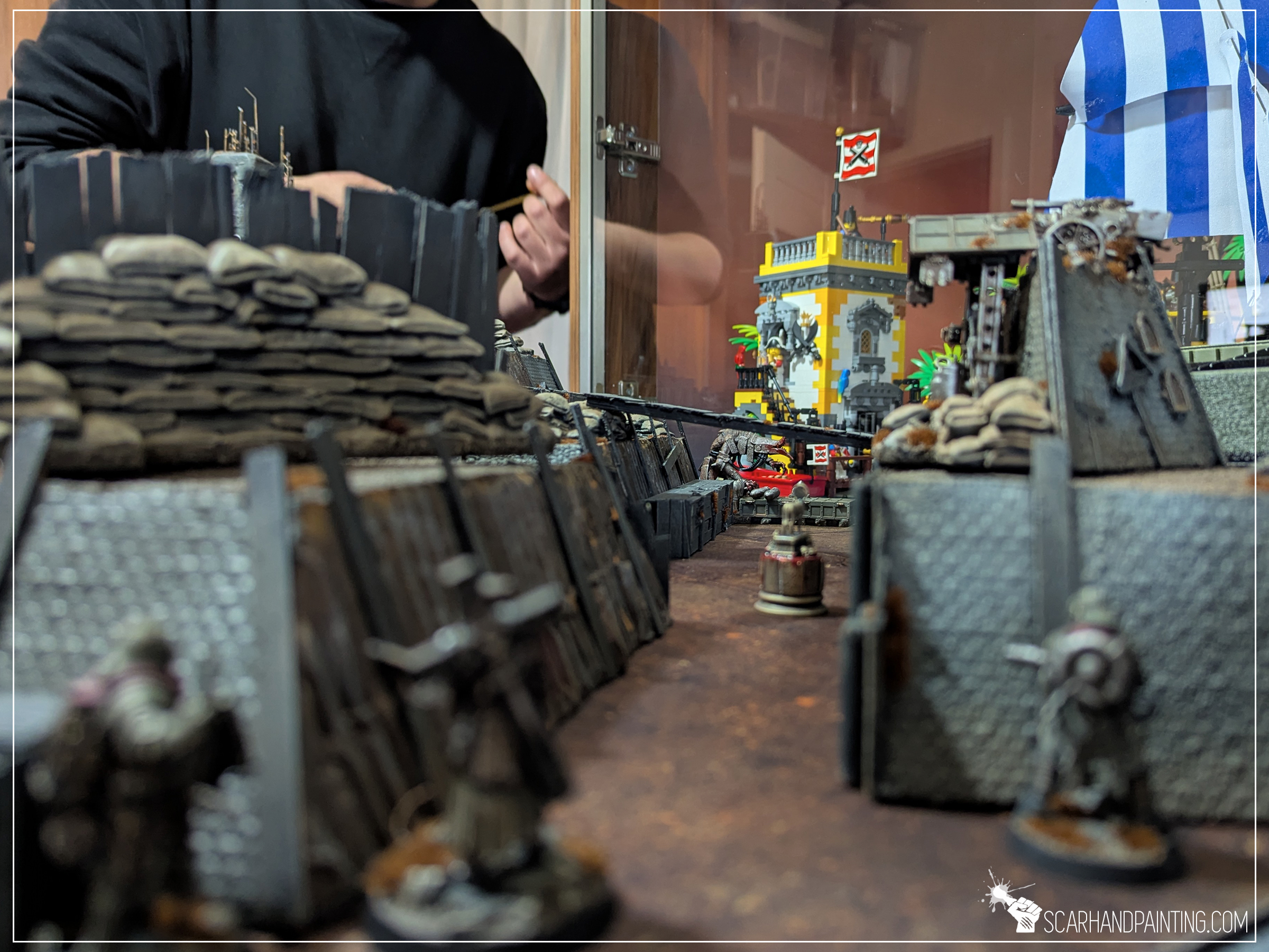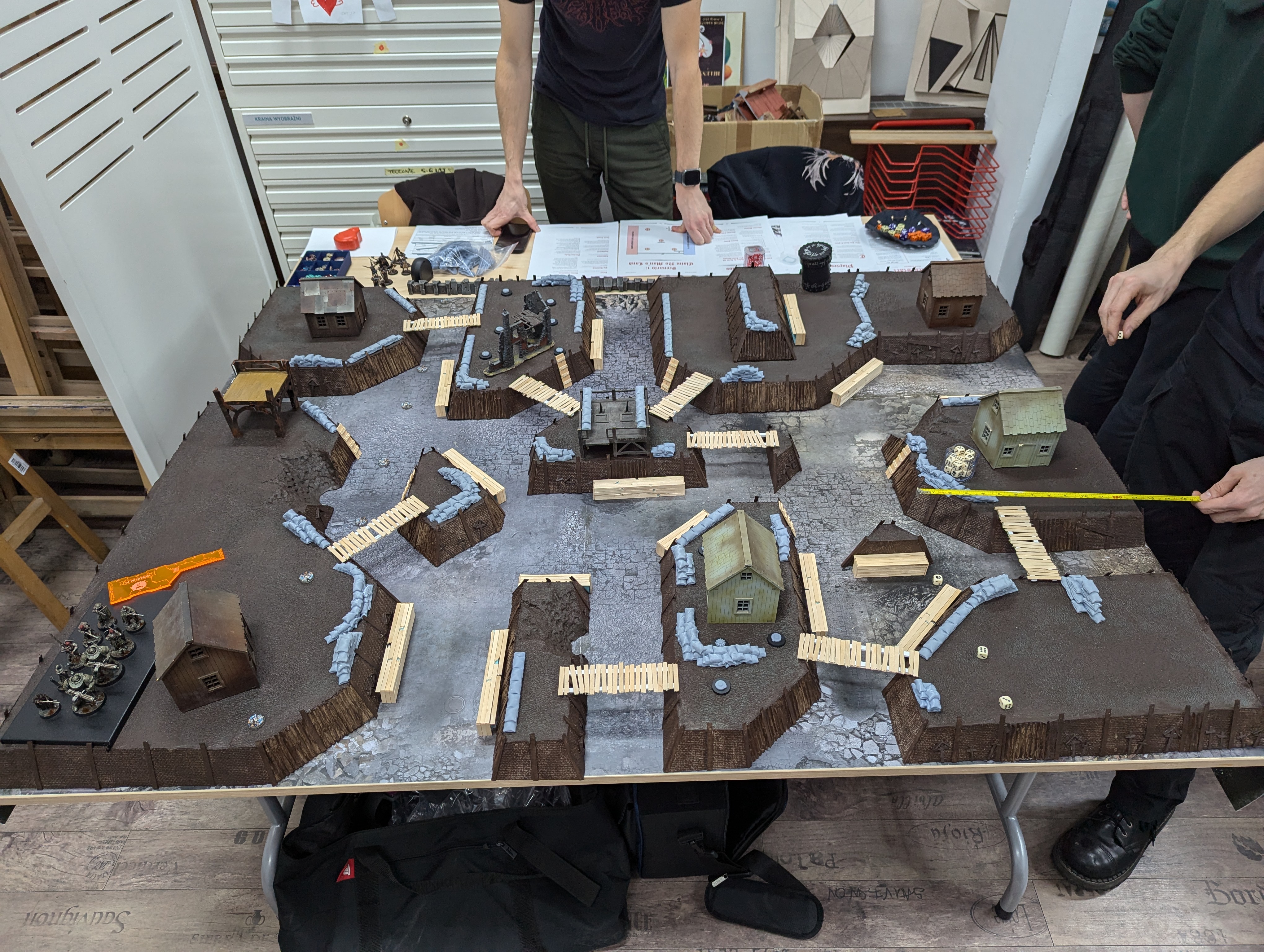 Taking a short break from making the Trench Crusade gaming board. Taking this opportunity to come here and share the results of the stress test that took place yesterday. Last evening I have transported the entire ‘board’ to a local club to give it a go and see what eventual hidden defects there might be. I had two games myself and let the locals have a go at it as well. We played on a 4×6 board, which is longer than recommended, but we just wanted to have some fun, see how the game works and how the board feels.