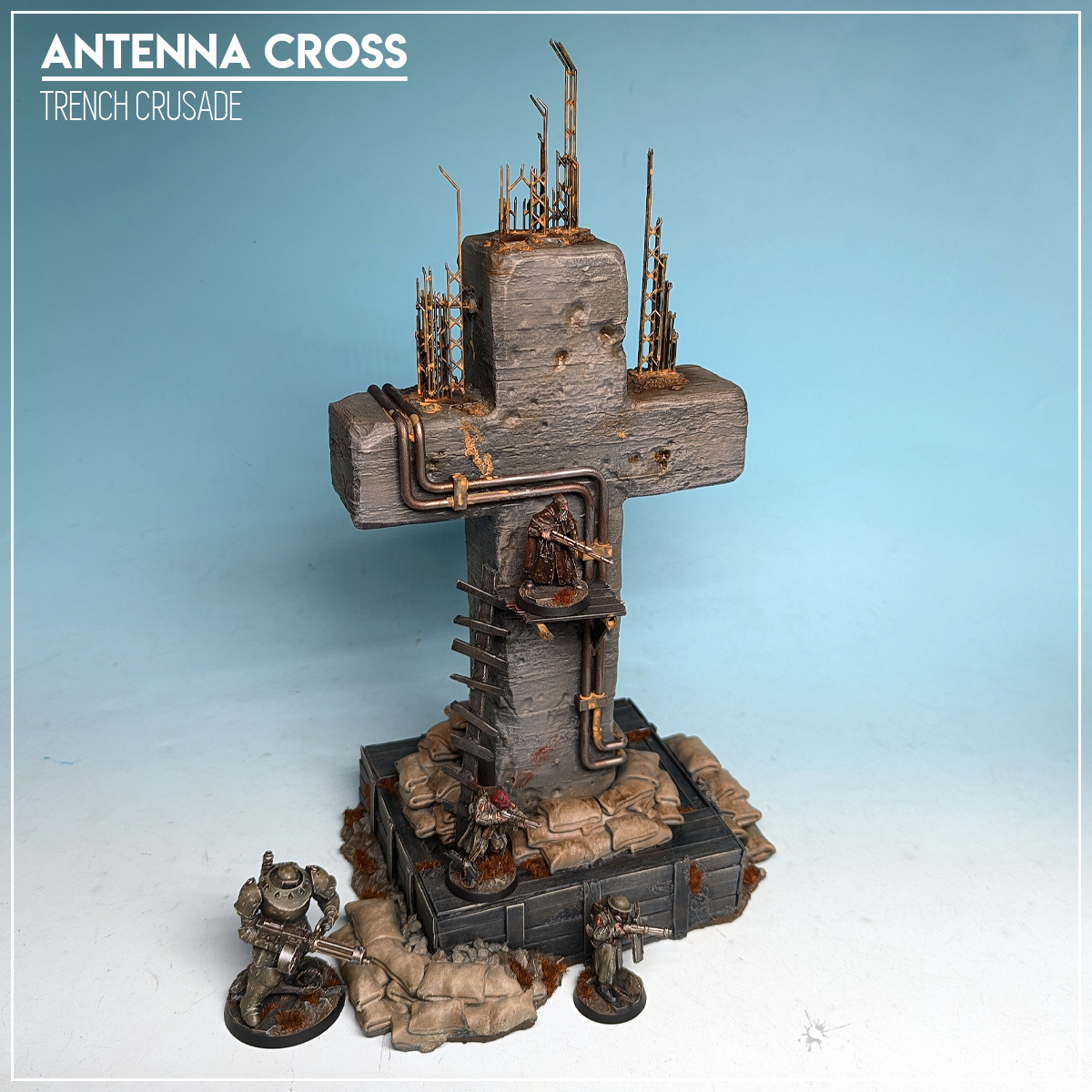 The Antenna Cross is one of, if not the most iconic piece of the Trench Crusade scenery. I just had to get one of my own. Printed the standard thingy then decided to expand the base and replace the antennas in order for it to better fit the rest of my scenery.