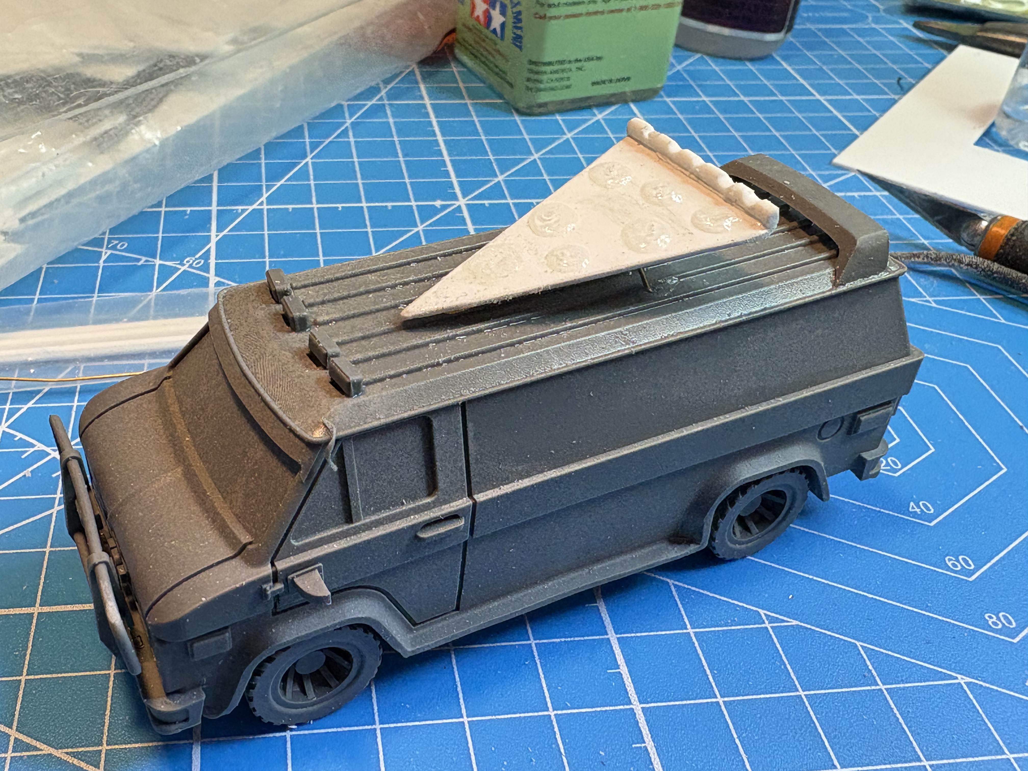 Conversion of the A-Team’s old van into a pizza delivery and turtle recce van!
