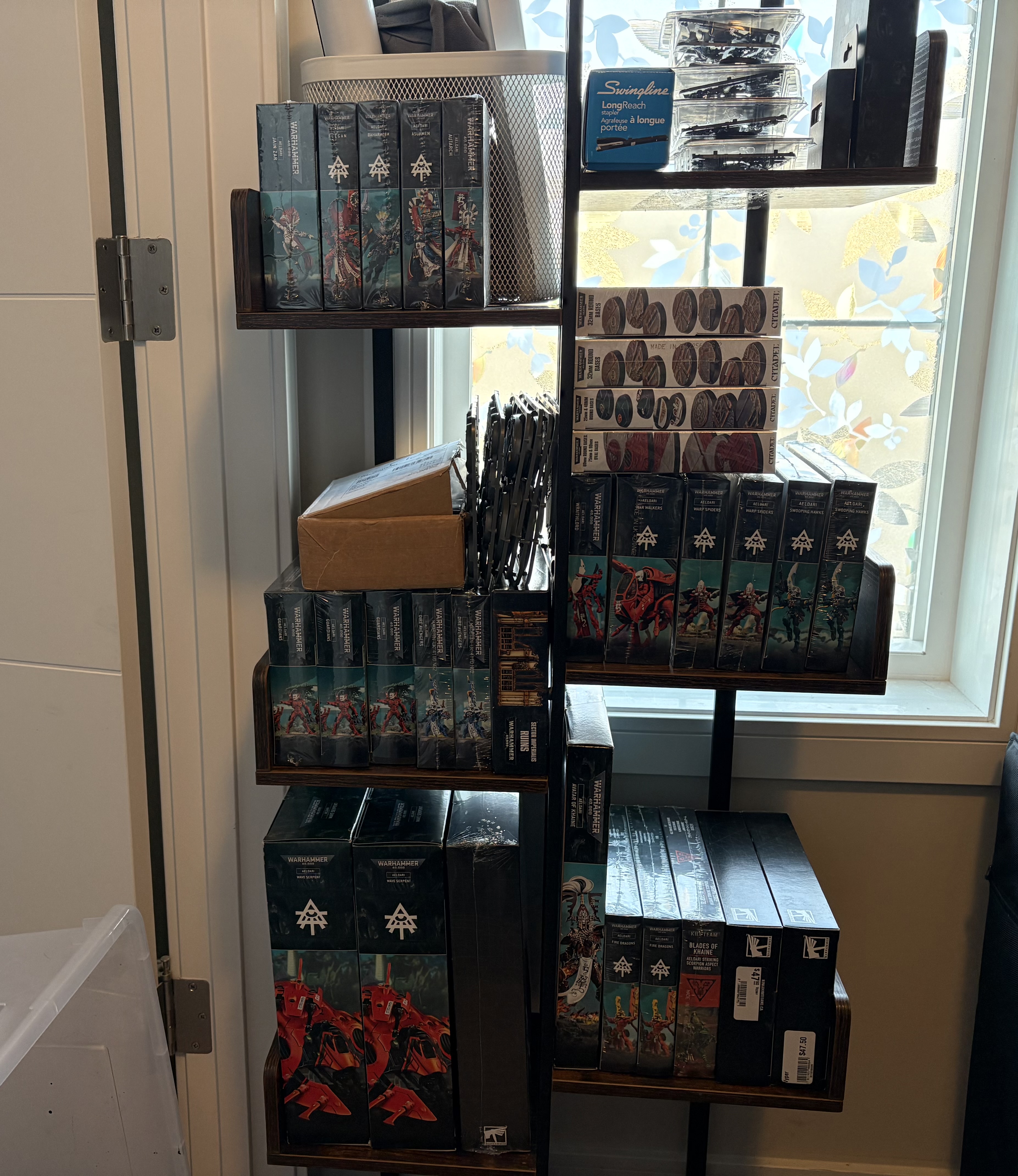 Pictured here is my STACK of new shrink-wrapped Aeldari, almost all of the possible units and combos. Progress is inevitable!