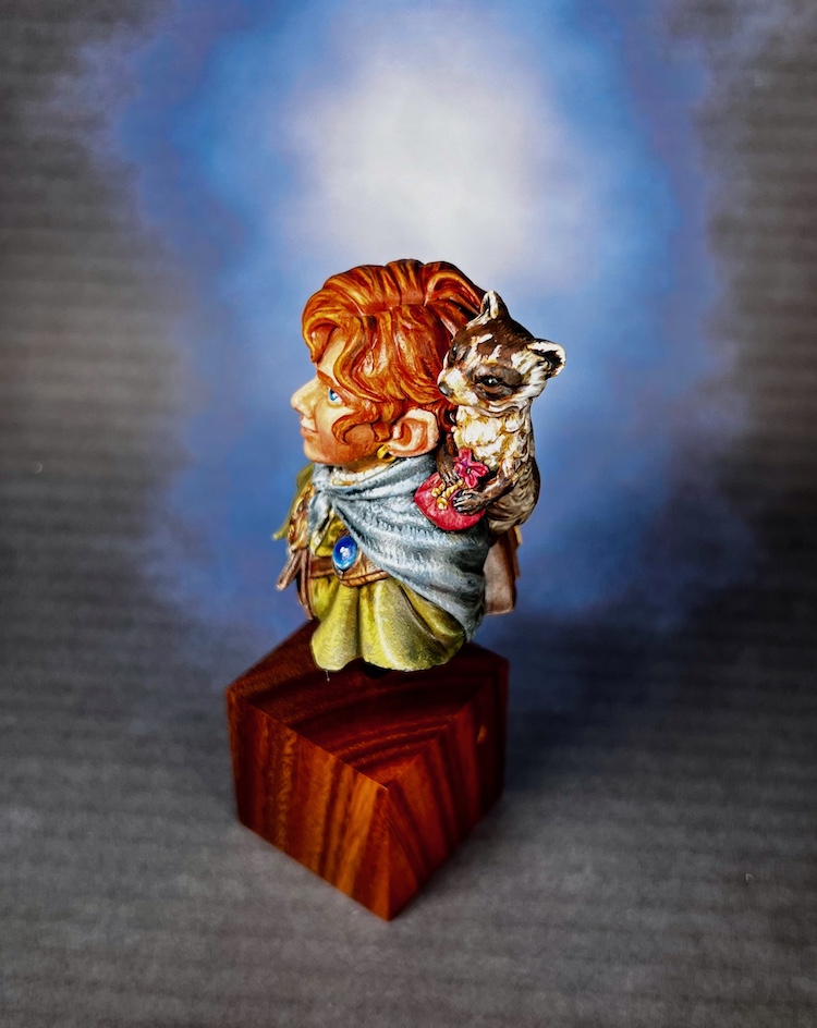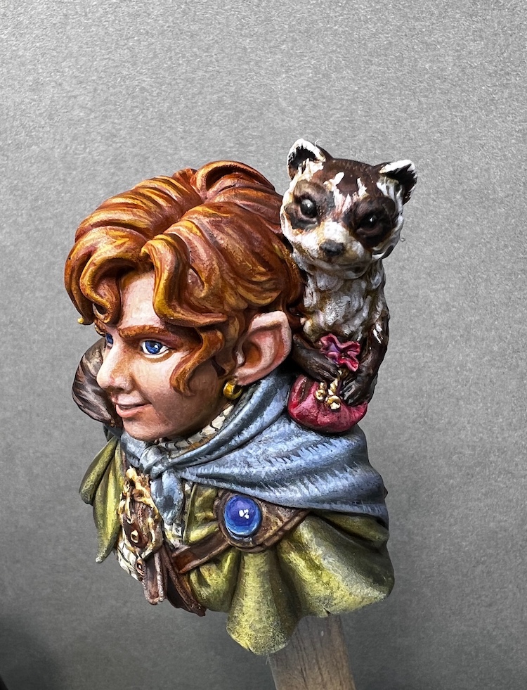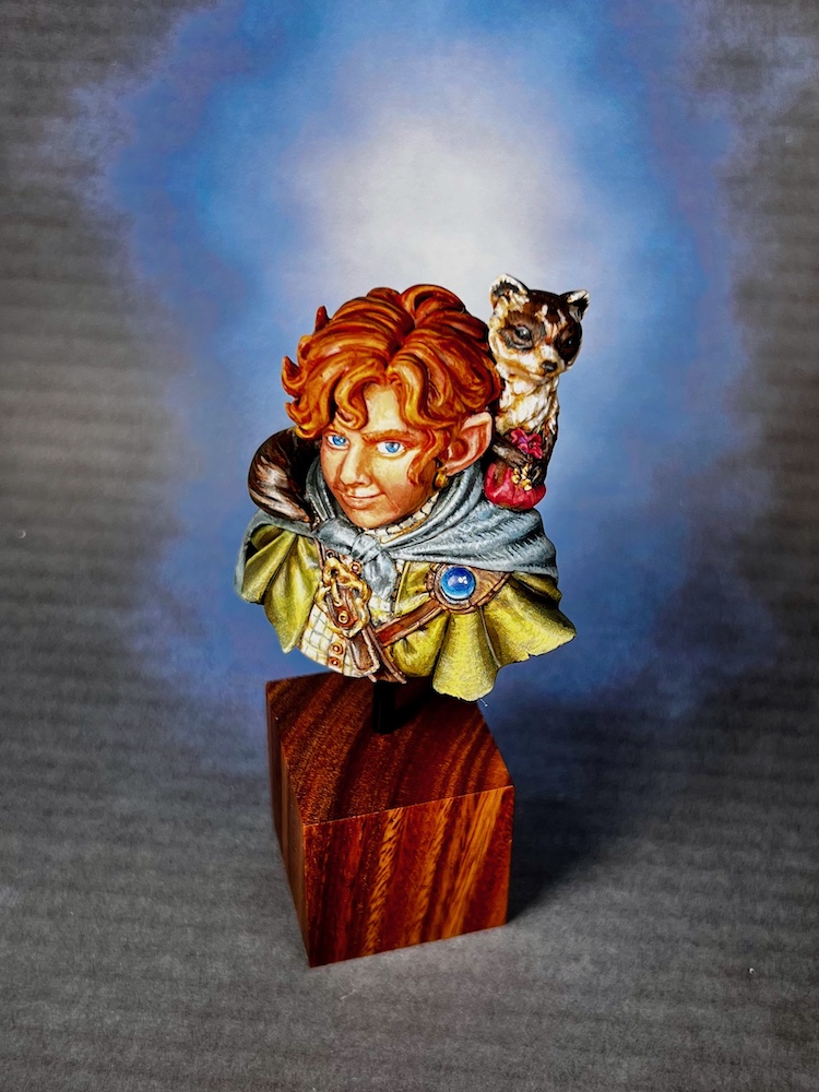 I may have been painting miniatures for over fifty years, everything from scale train figures to wargaming and role playing minis, but I have never painted a humanoid bust. I did paint a dragon bust a couple years ago but really that was pretty much still a 25mm dragon head. With the latest Art of...books from Dave Taylor Minis came the option for a wonderful halfling bust from Bid Child Creatives which I had to pick up. This is way out of my comfort zone so it should be interesting seeing how I do. My goal is to have this fellow finished b the end of May to be entered in the 2025 KublaCon Painting Exhibition. Thumbs pressed, as my German friends say.