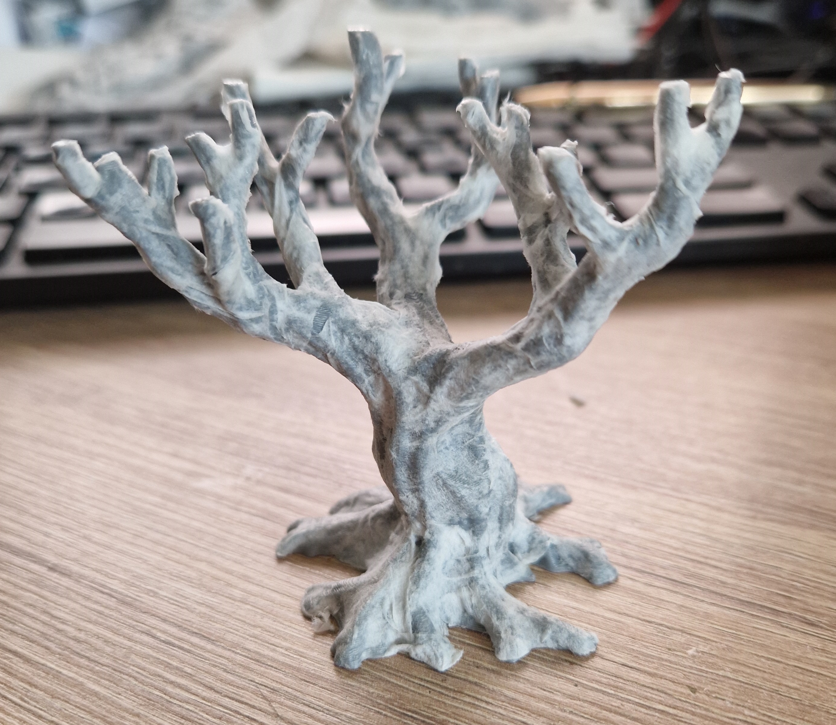 Did a test, PVA glue and cheap kitchen towel 2 ply separated to single sheets torn up and applied to the 3D pieces, seems to have kept the detail but hidden the layer lines. Priming will be the real test.