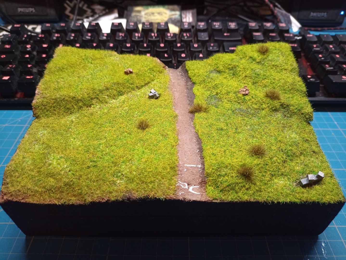 After that some more PVA on top and a good helping of static grass and tuffts.