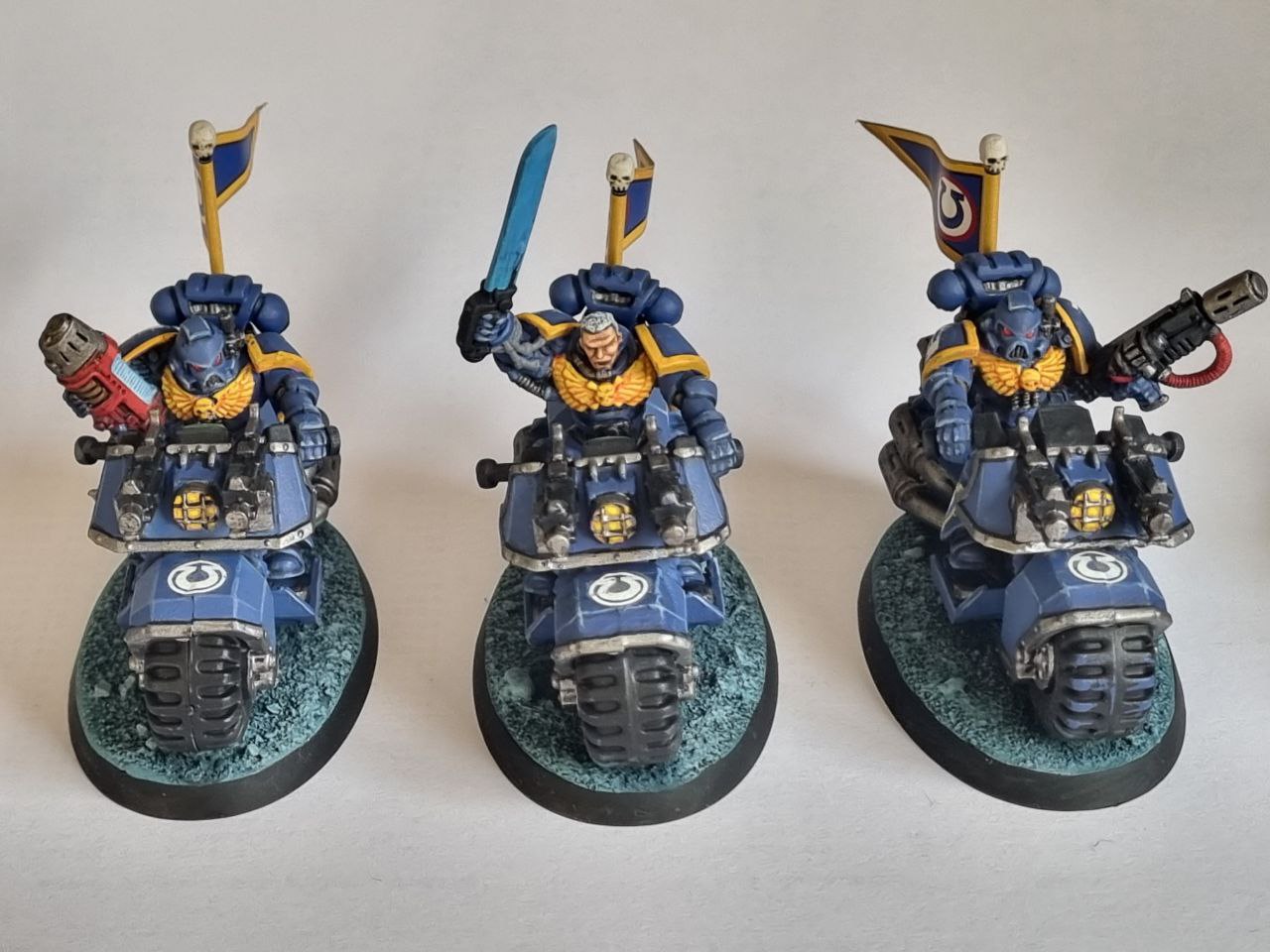 Next up the biker patrol. Some ebay rescues in here, its really why i started the project as i realised i owned a few more space marine bikes than i thought and needed a reason to paint them up.