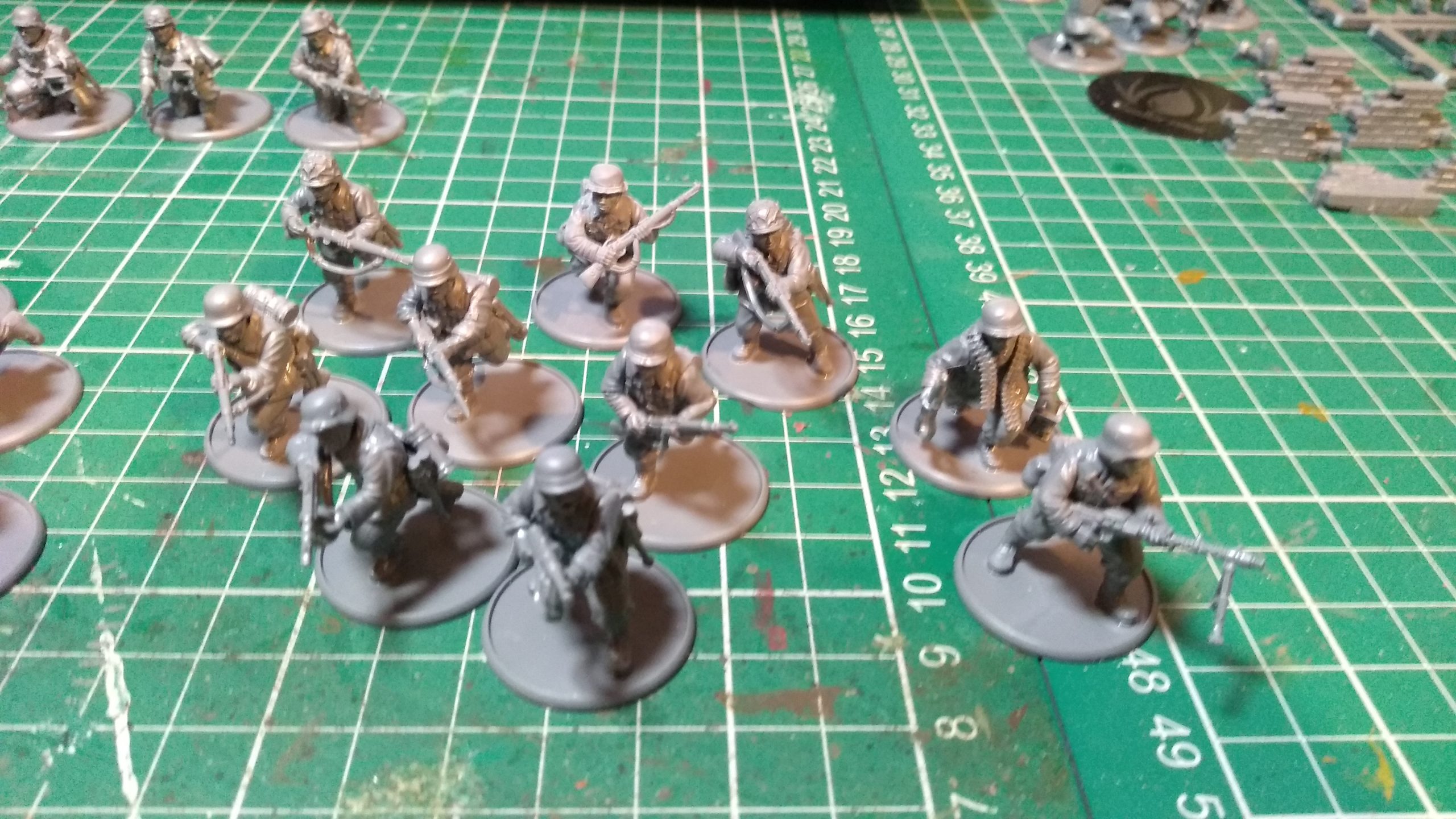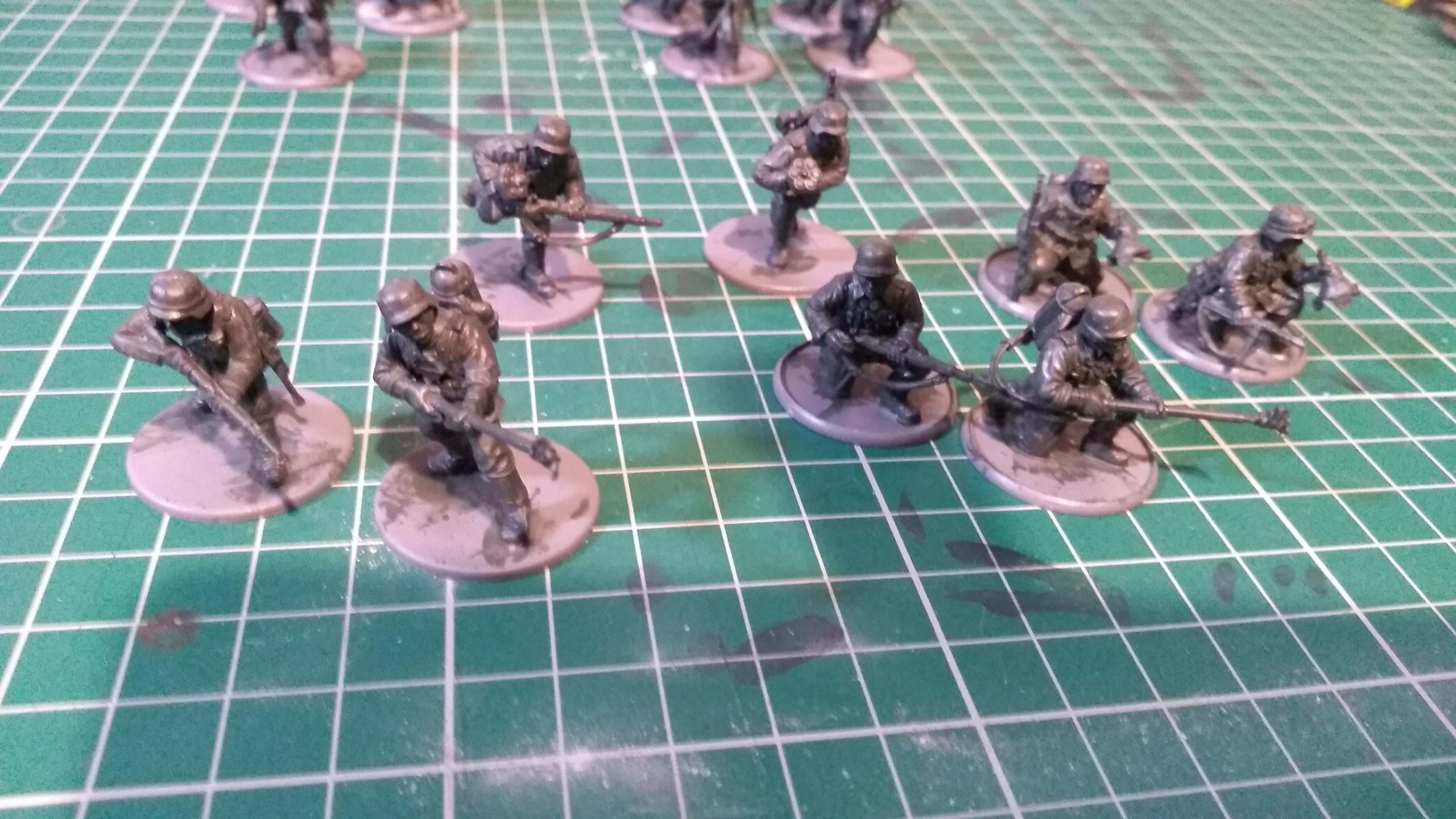 FINALLY got to finish my 2nd squad of German vets after catching the nasty new covid strain and my body feeling it had been continually butt slammed by Kim Kardashian’s arse cheeks and sweating like Rolf Harris in a…… anyway, I only built 2 sqauds as I dont really like the kneeling down pose in my squads so have used the kneeling minis to build some pioneers but how many of these is yet to be confirmed.