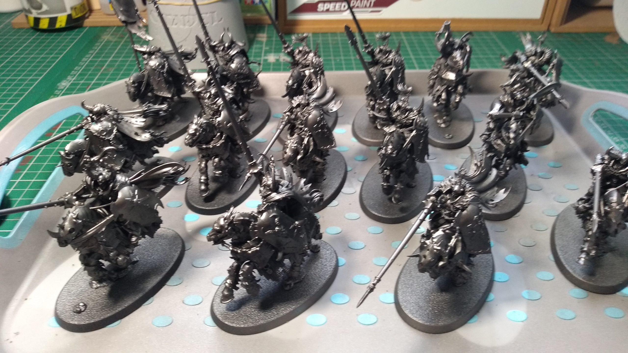 Chaos knights primed with black and a dusting of Lead Belcher.