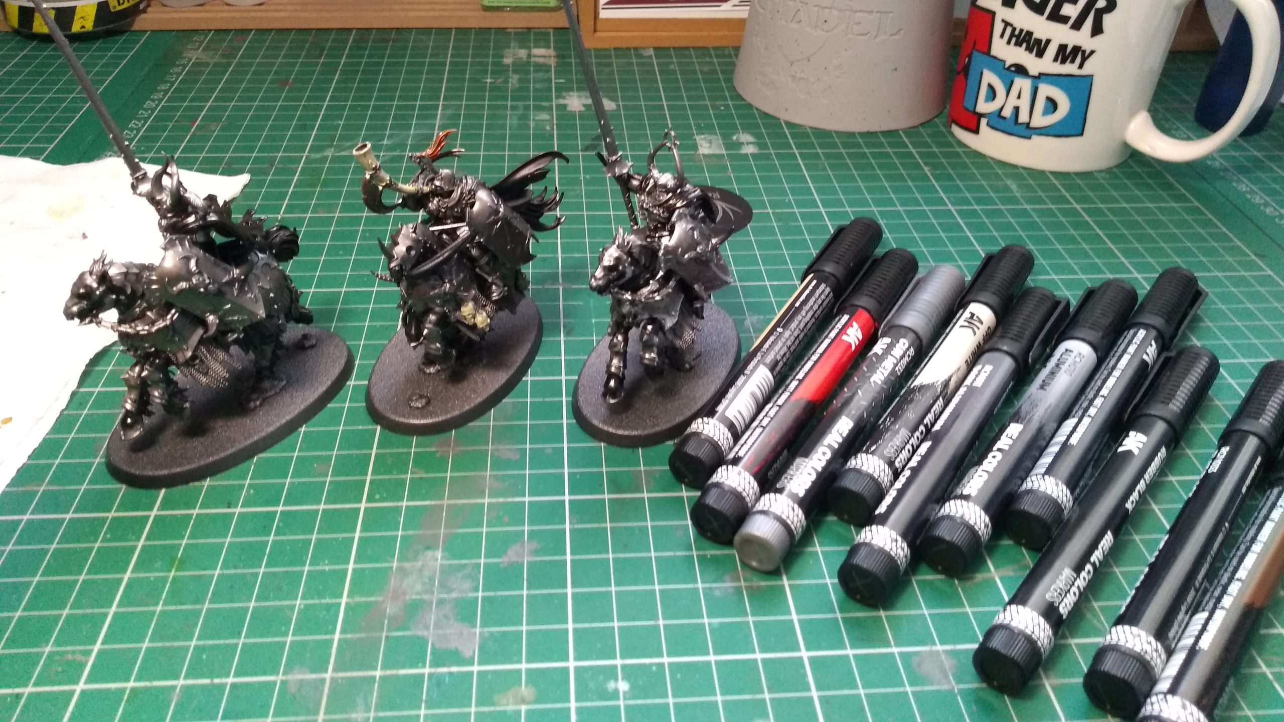 So flocked and finished my evil lord and so starting my chaos knights but thought I would use my AK pens, instead of paint and brush and will see how they look when finished.