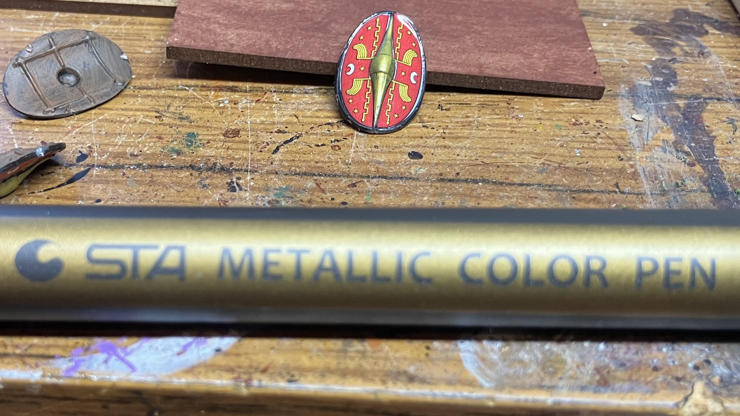 Vallejo game Brassy Brass for Baltea (dangly bit at the front) and hilts