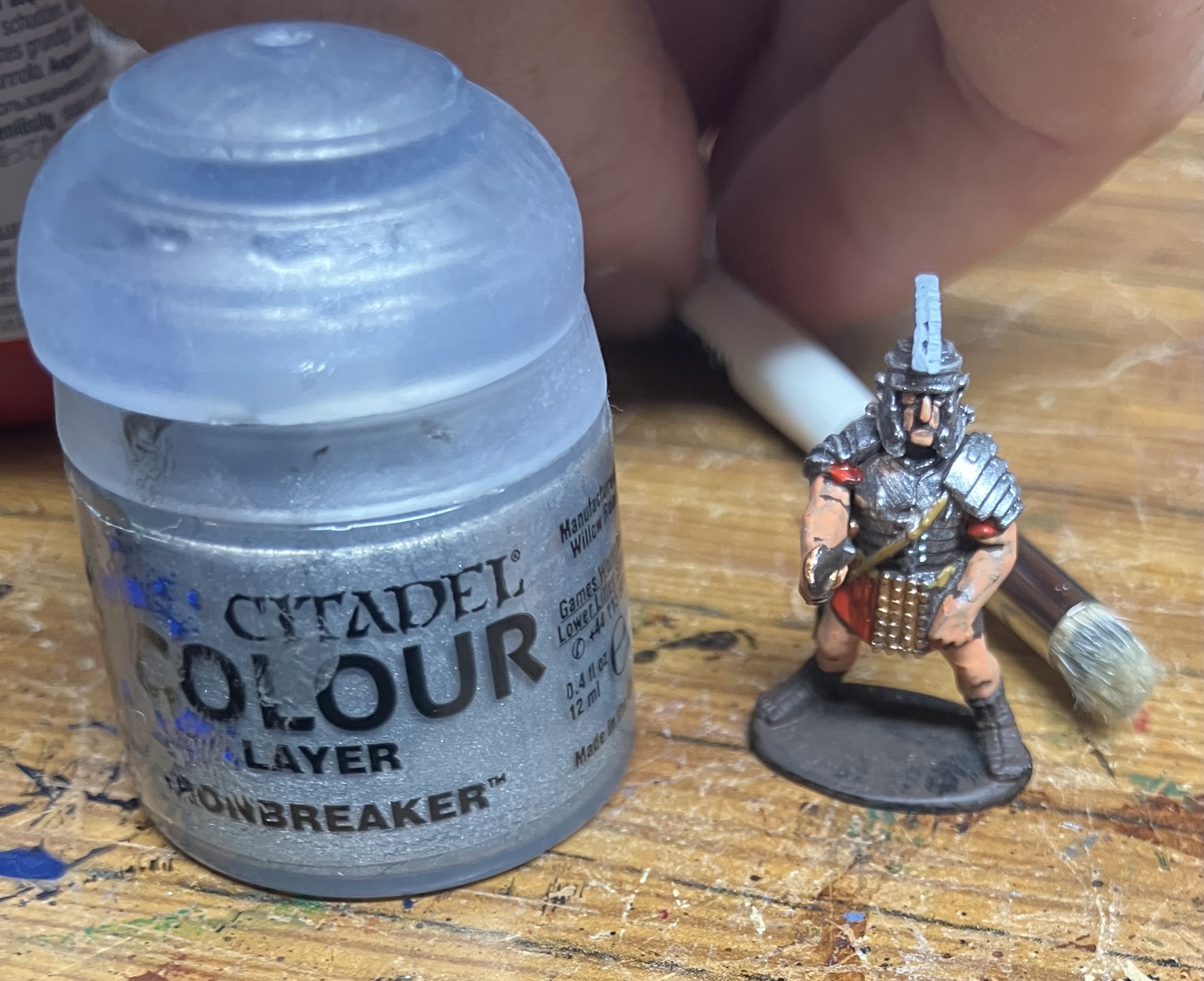 and then I didn’t like the one bit I’d done before, the metals, so they got drybrushed with citadel iron breaker.