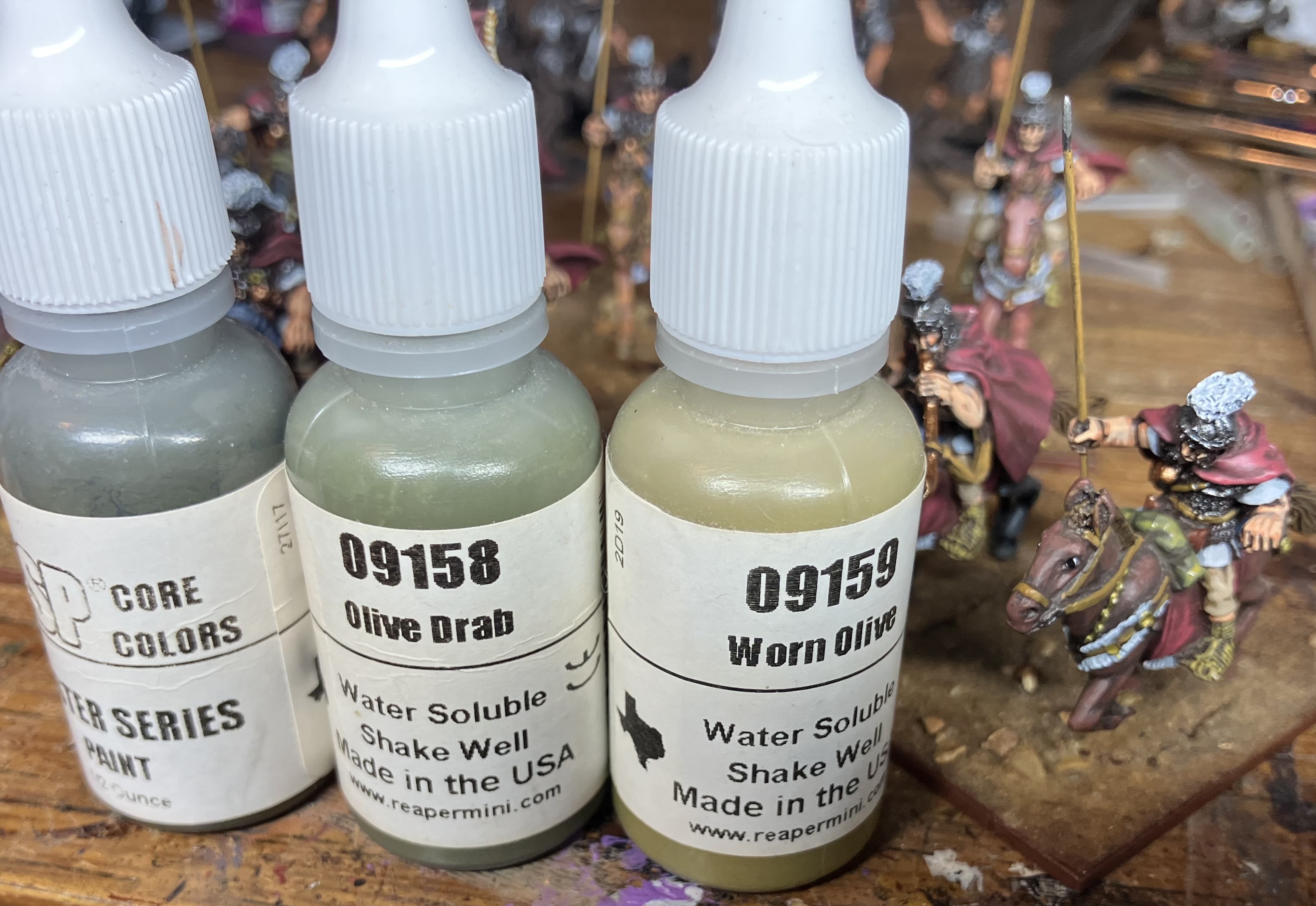 And the one I remembered to photograph – the secondary bed rolls were done with the Reaper paints olive green triad