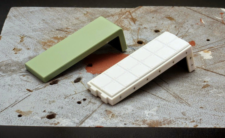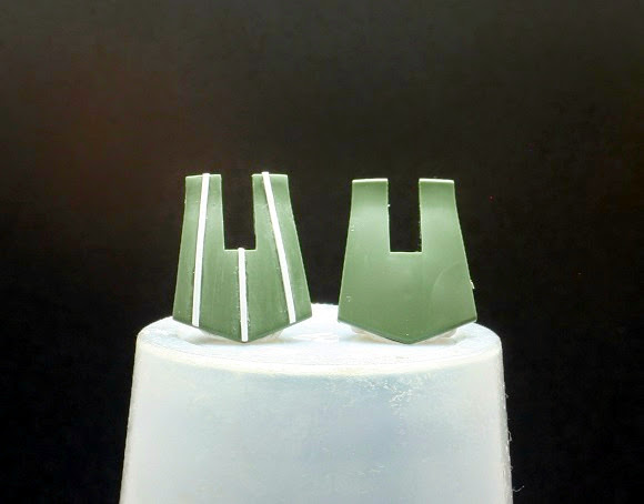 The second is the actual shoulder pad. I distressed it with Polystyrene cement, and added grooves manually with an engraver.