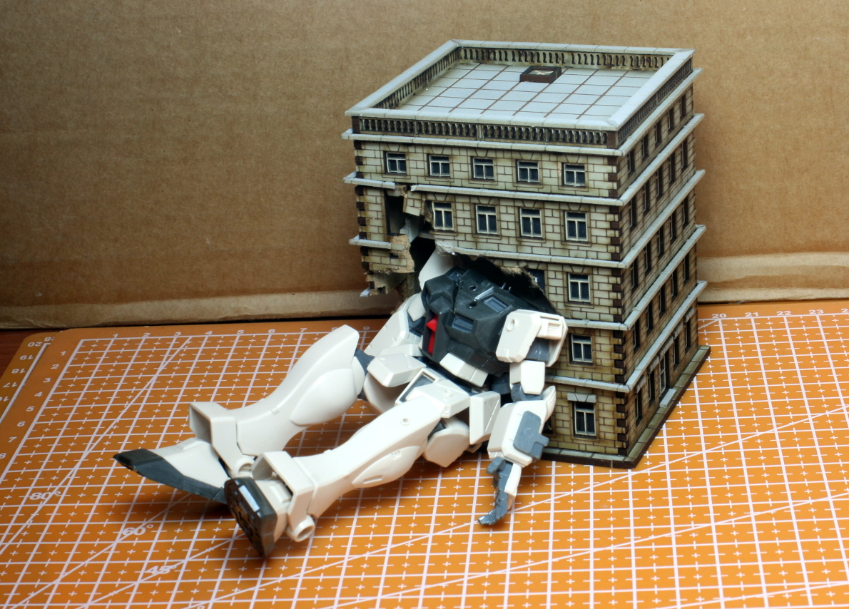 The damaged interior of the building was created with the MDF sprues that came with the kit.