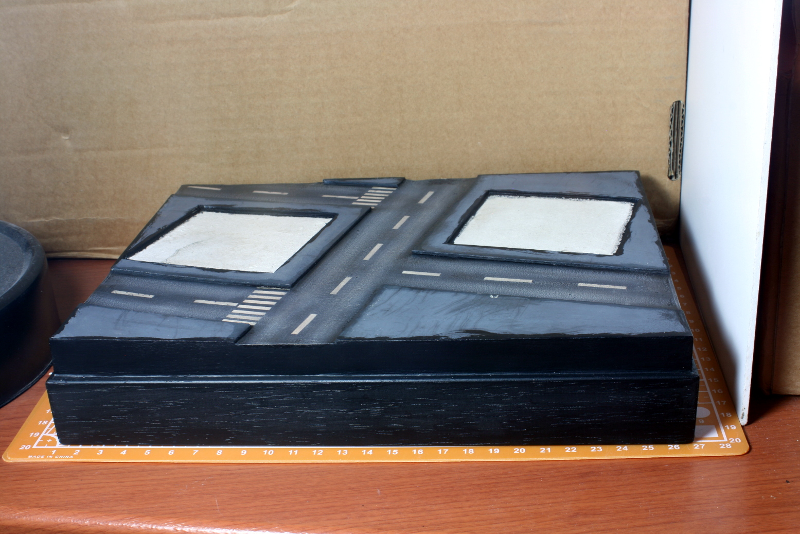 I did manage to highlight the building and paint up the streets and start work on the base details – but that is it. I wanted to finish the base and start painting the robots – but alas the best laid plans…and all that stuff.