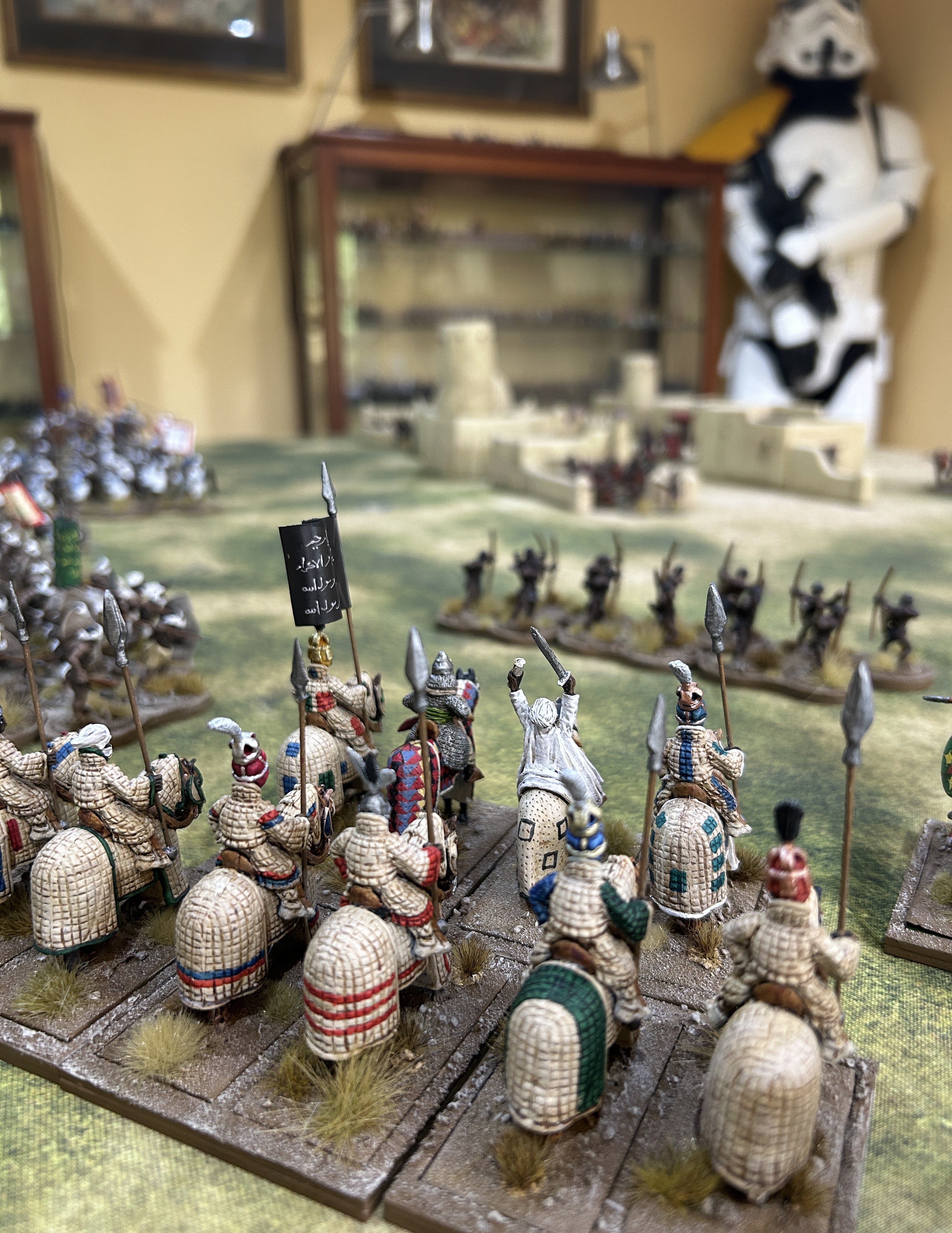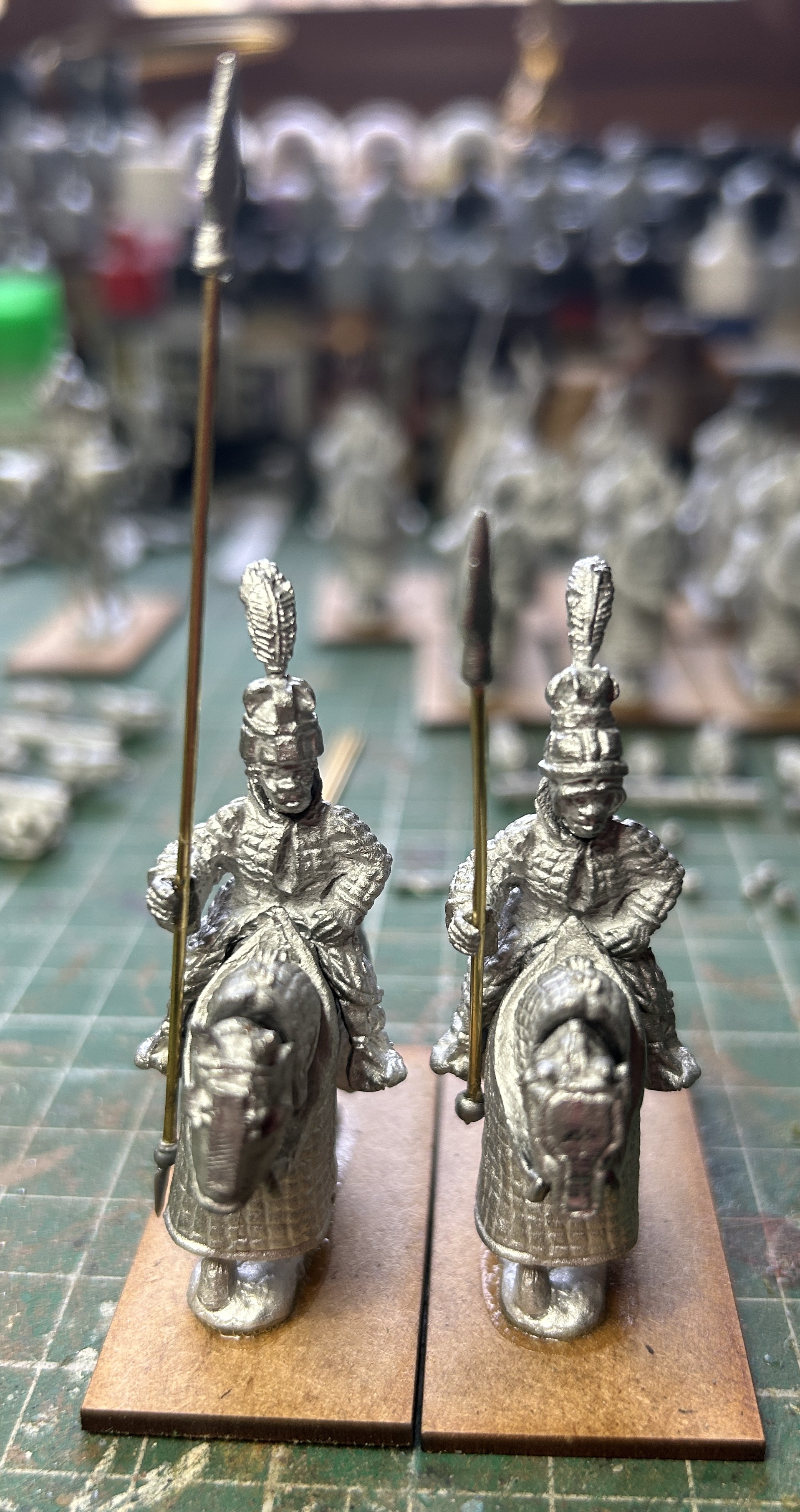 I chose a slightly different colour scheme to help with that too. This unit were getting the red banner so some models had some red added, a colour not present in the other cavalry. Otherwise I stuck to the white and blue scheme of the Shuwa infantry. Perhaps a bit more Cloudburst Blue in the mix this time as I prefer this deeper and less saturated tone.