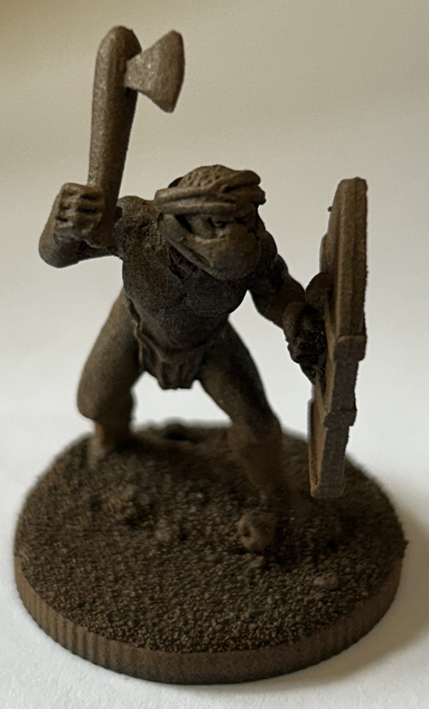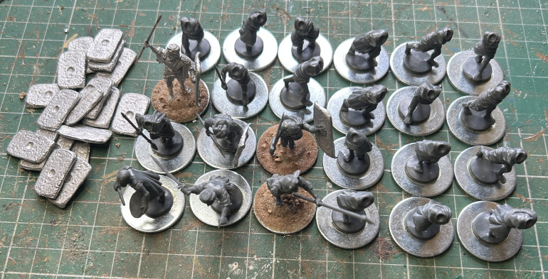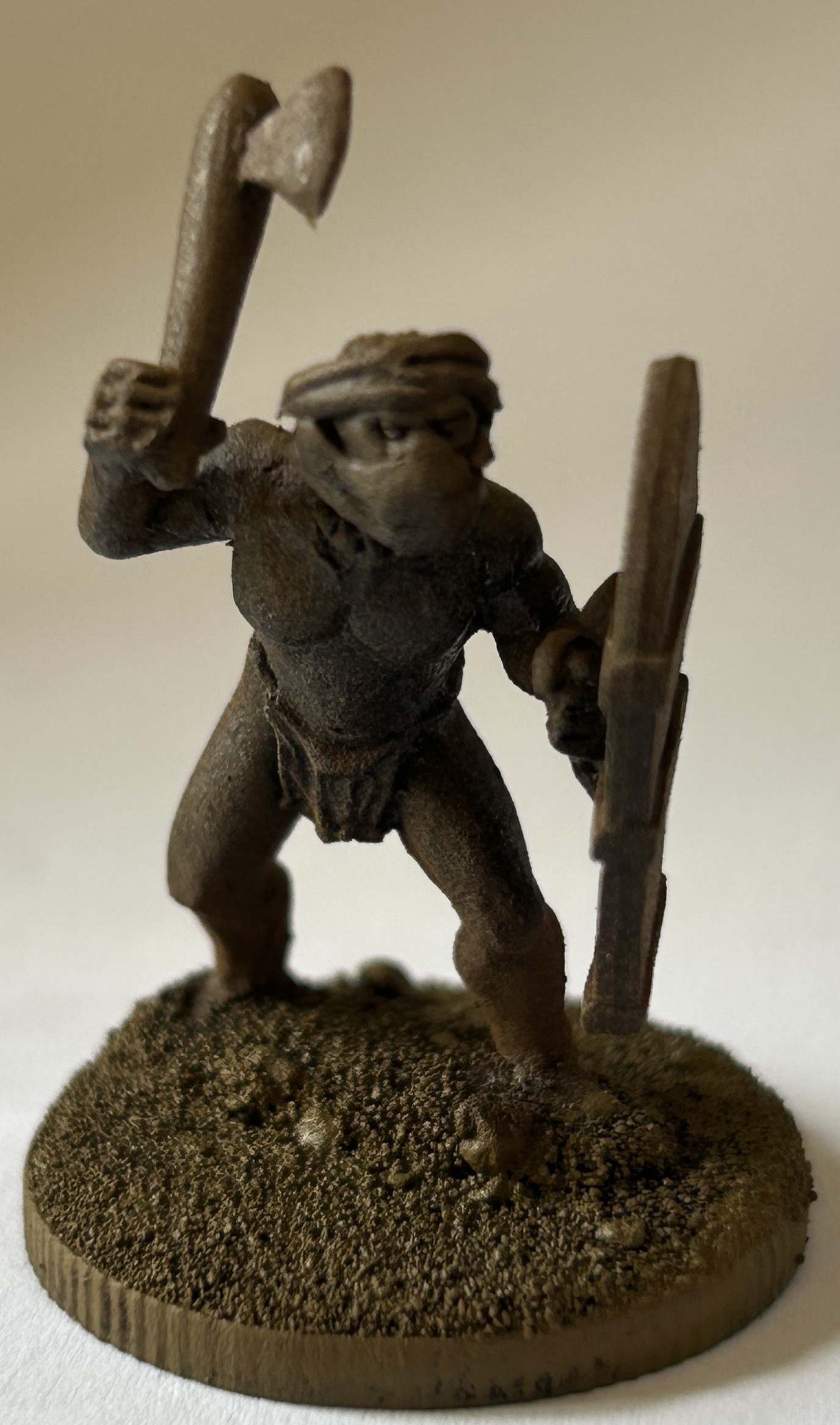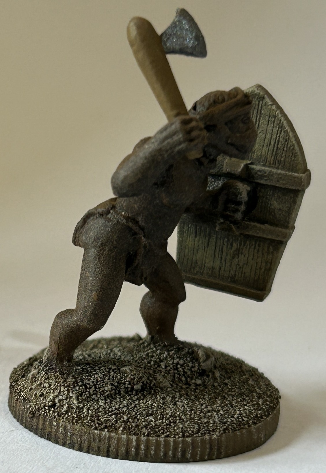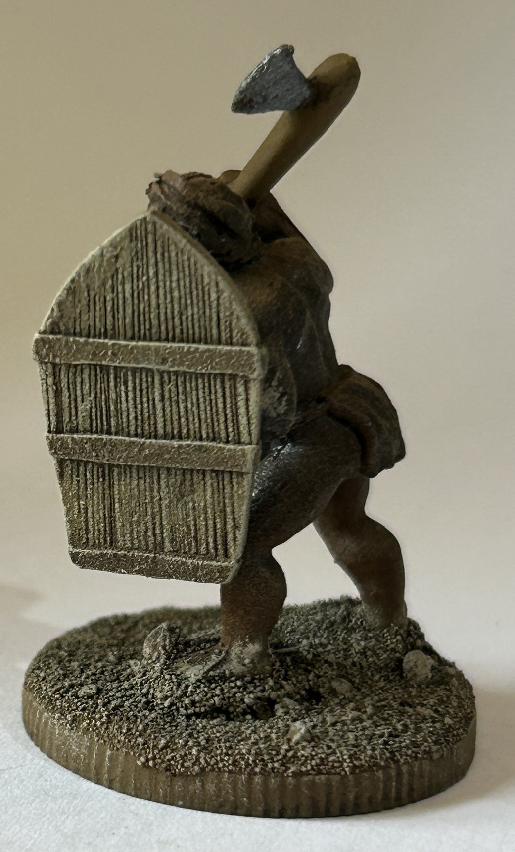 Now onto weapons. Most of the warriors have spears. The art shows long slender shafts so I went for wire spears that I cut to length with tin snips. For a bit of visual variety on axeman is in each unit. Vallejo Earth on the haft and Gunmetal for the head.