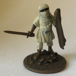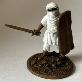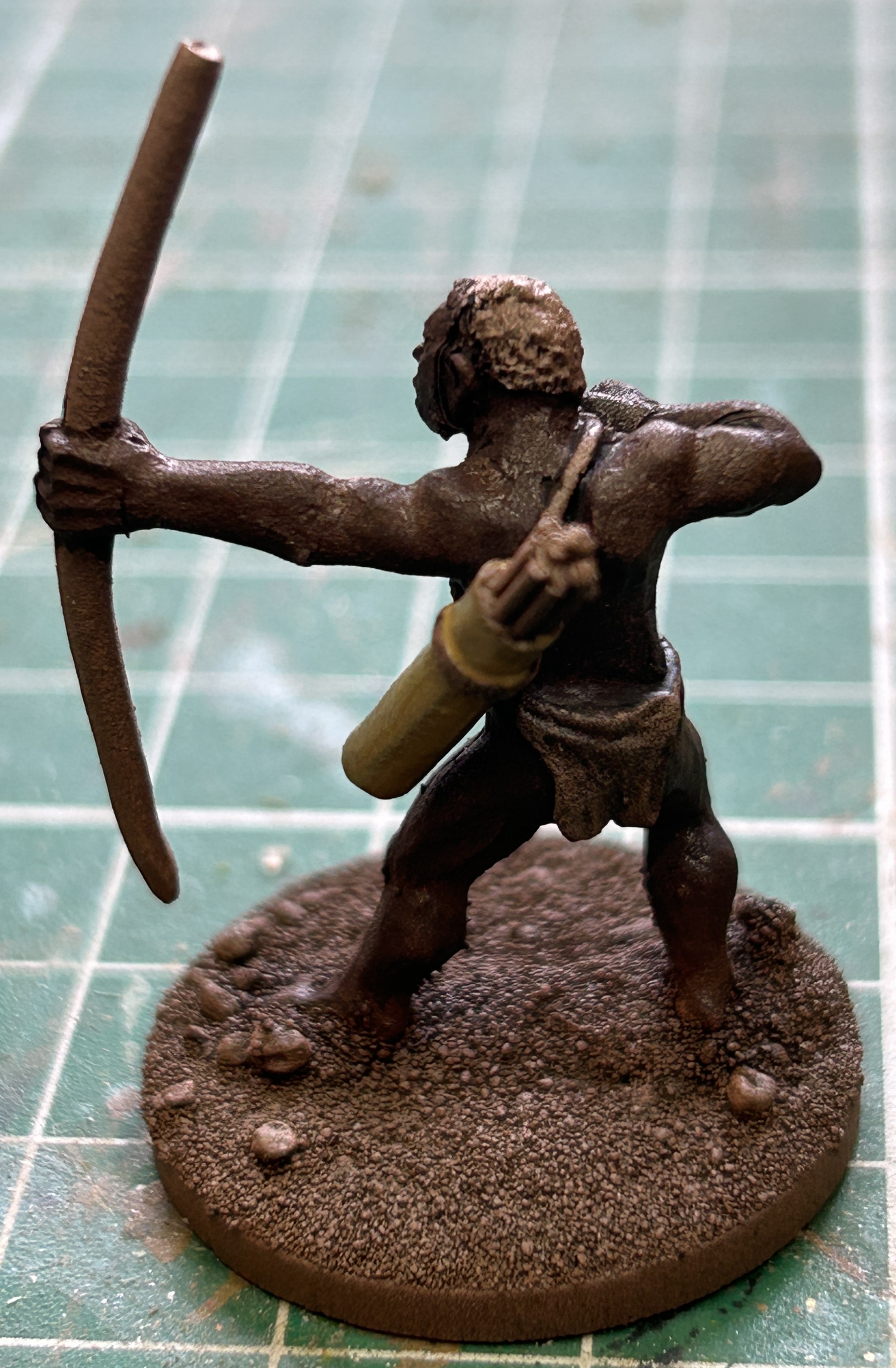 Staying with the Bonewhite change brush and put a layer onto the loincloth and head scarf. This will look a little patchy but that helps us with depth in the final finish so no second layer or touch ups required.