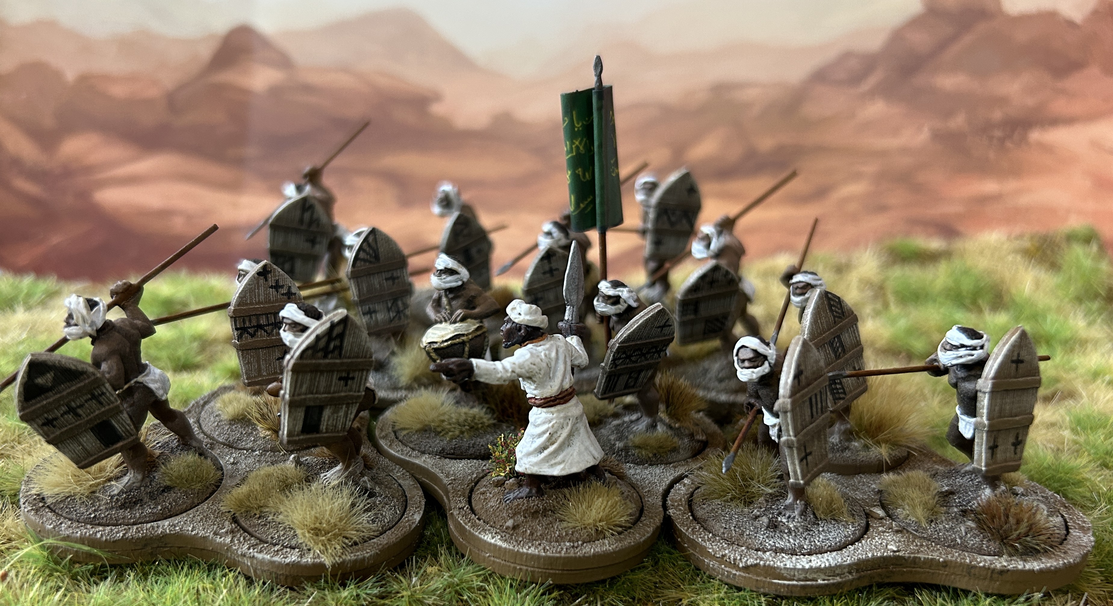 This is the unit of allied Shuwa Arab cavalry. The better resourced warriors were able to afford a horse which was very prestigous. They were reported as operating without shields so have been modelled accordingly. This helps to differentiate them from the local cavalry.