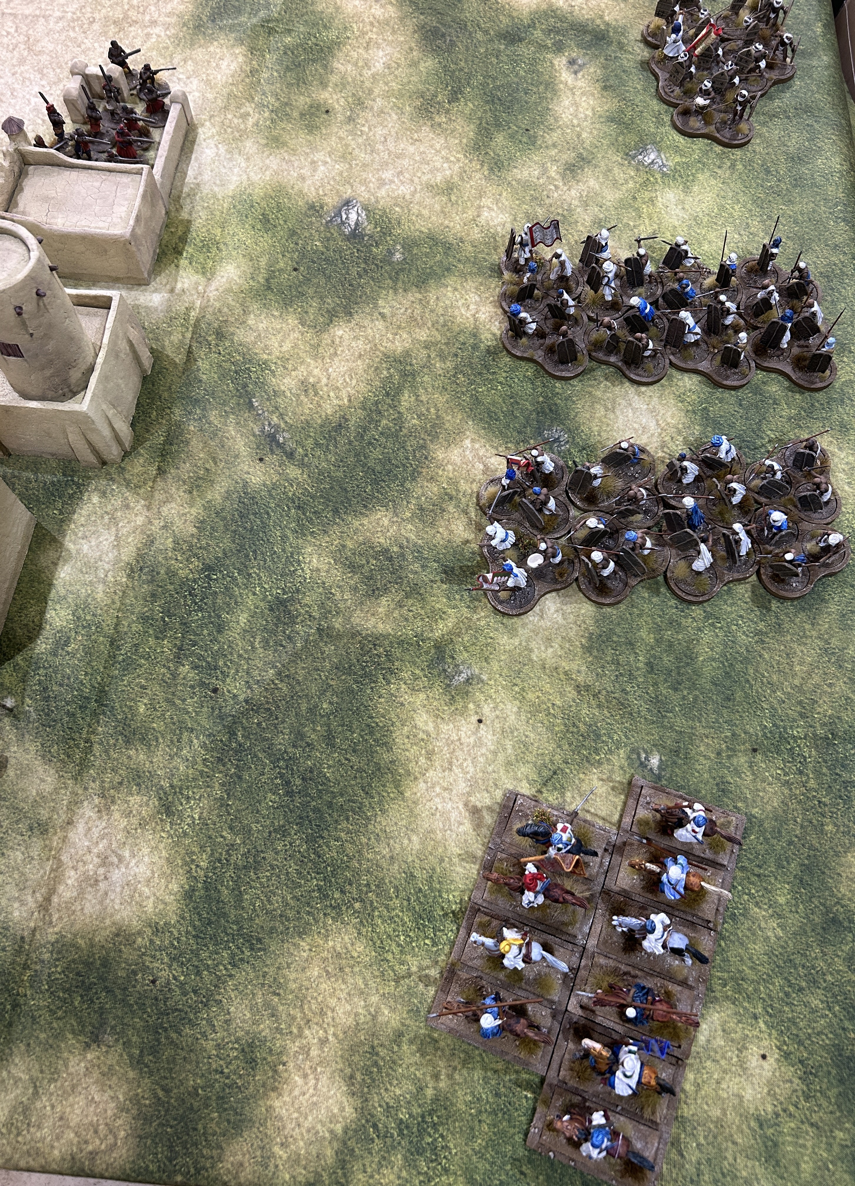 The Kanembu forces have the locals on the right wing with their Shuwa allies on their left, opposite the village.