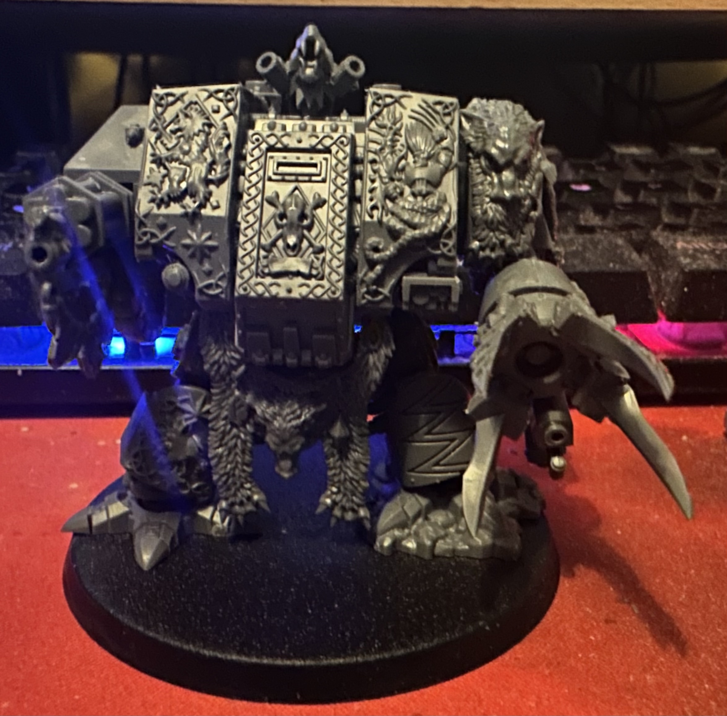 Amusingly my first experience with the Space Wolf Venerable Dreadnought kit was a rescue, a mini I picked up in an EBay lot that had been a little abused it’s safe to say. So much so that honestly all I could do was kit it out with the Great Frost Axe and Blizzard Shield combo, which at least meant I could use it as either a SW Ven Dread or a Wulfen Dreadnought as both can get that loadout. But I still felt something was missing….