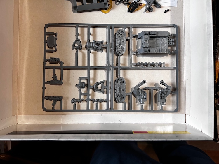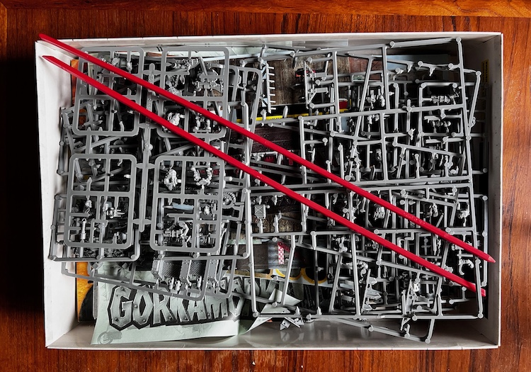 While both trikes or Wartracks are in the box there are only enough parts to assemble 7 Yuffs and both Trukk kits are missing. Seeing that they are written up on the two sheets means someone assembled enough to play a basic game. Oh well, can’t complain about a free game and I remembered that I have two kits in the closet I’ve never opened. While not the same era, they are Space Ork so I feel an appropriate addition to the project.
