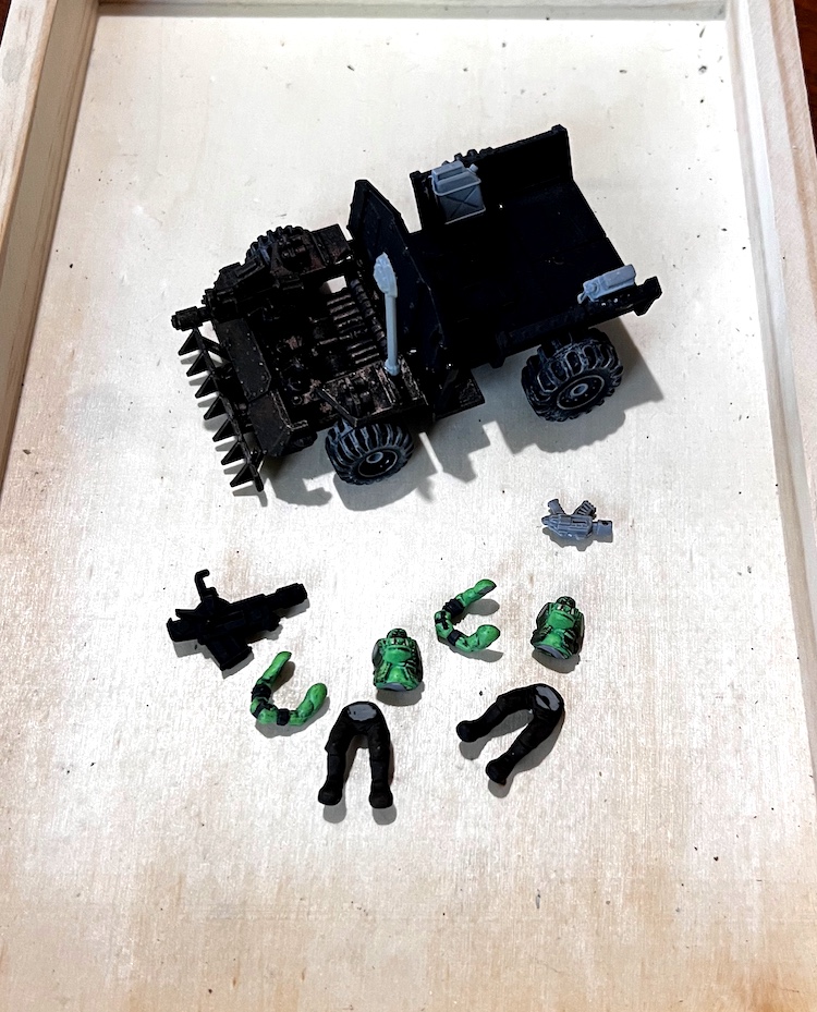 I was able to find a previously owned trukk on Noble Knight Games for a good price so picked that up right away. It’s crew are already partially painted so that saves time and I added some of my left over bits and pieces after assembling it.