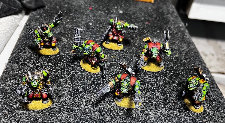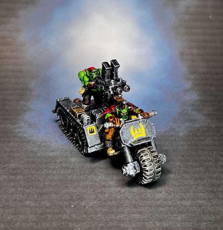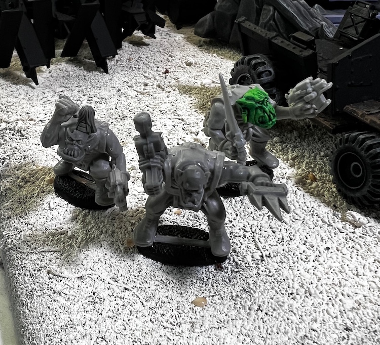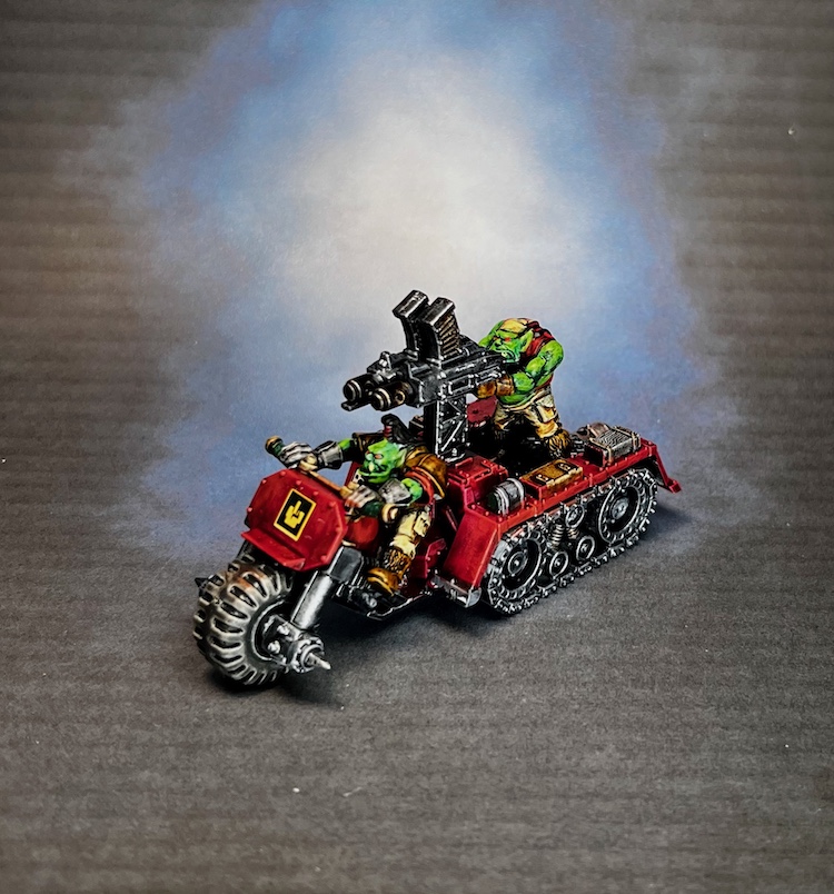I have finished both War Trakks and the terrain bits. I’ve also finished all of the Boys that came with my set but they photographed badly. Hard to get the kite Gitz to hold still apparently. I’ve just about finished the first Trukk I picked up online, just needs some decals and I’ve assembled the second Trukk I picked up as well. Get a few more Boys assembled from spare parts and painted and it will be time to move onto the fort.