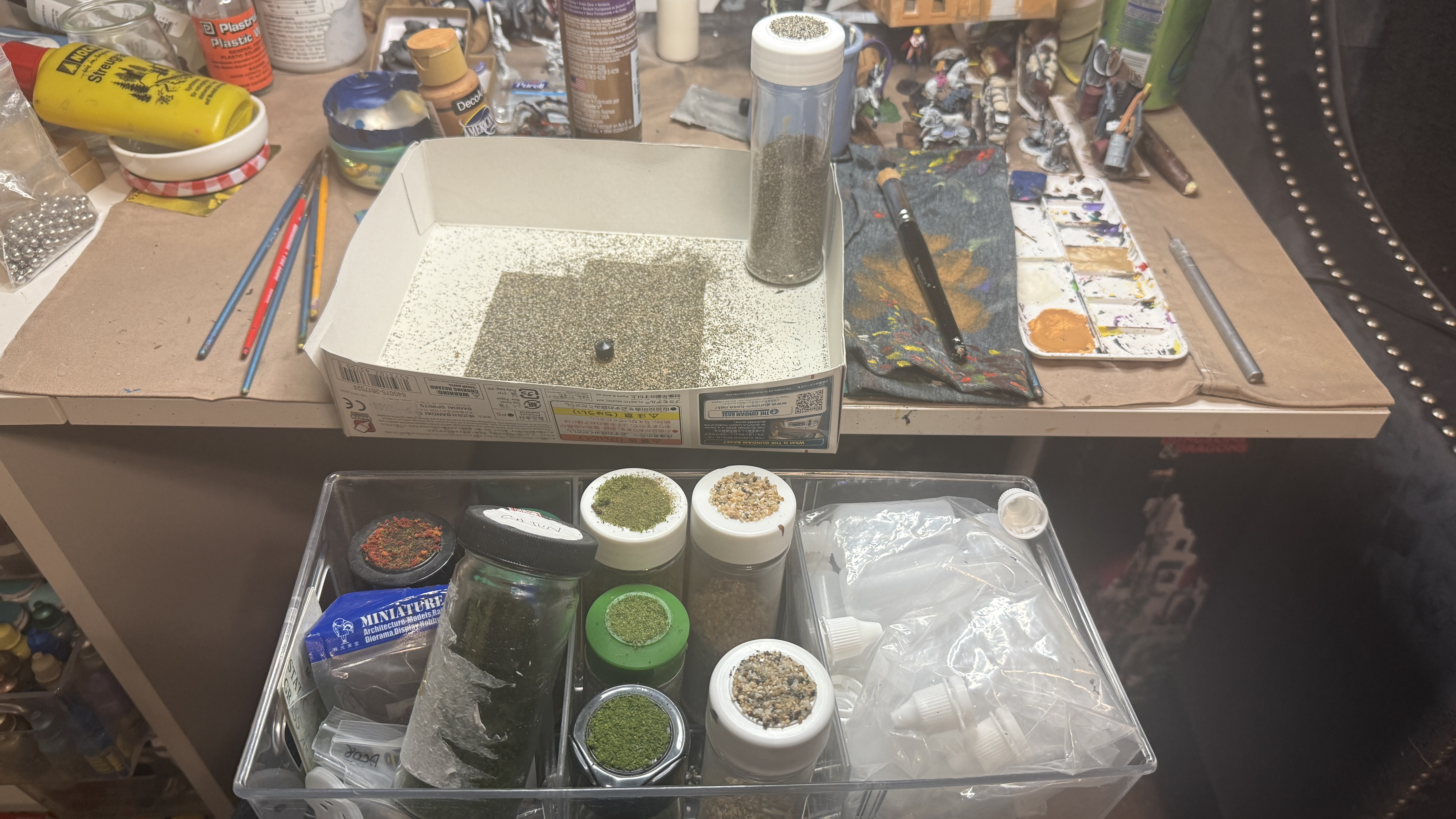 Just 2 hours of painting tonight, had a long day with family and haus chores distracting me. Setting down to paint the first task was to clear the work space.