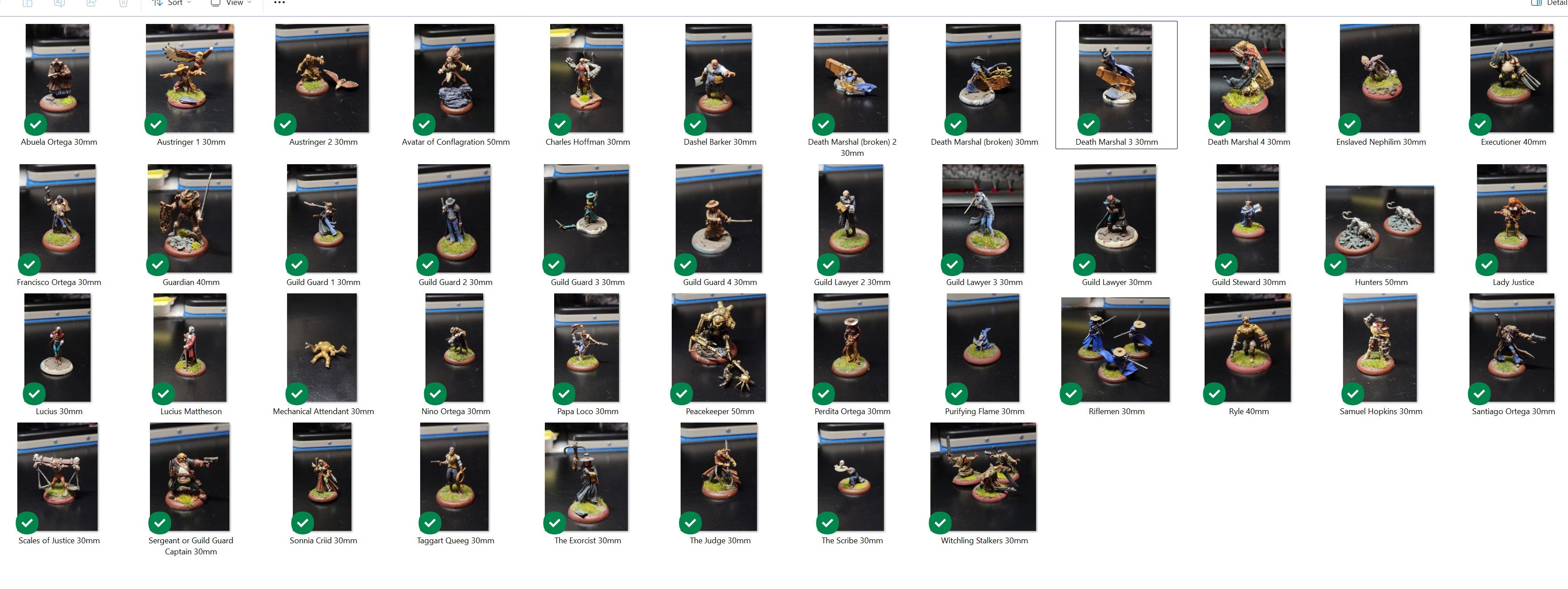 Malifaux having a continuous story over the years meant that most of the characters have stayed in the game; current range of models had older sculpts that have been updated so I started there. Googling “first edition Malifaux (insert model name)” worked for about three quarters of what I have. Thankfully Reddit, the Malifaux Classics sections of Wyrd’s shop, the Wyrd discord helped with the rest.