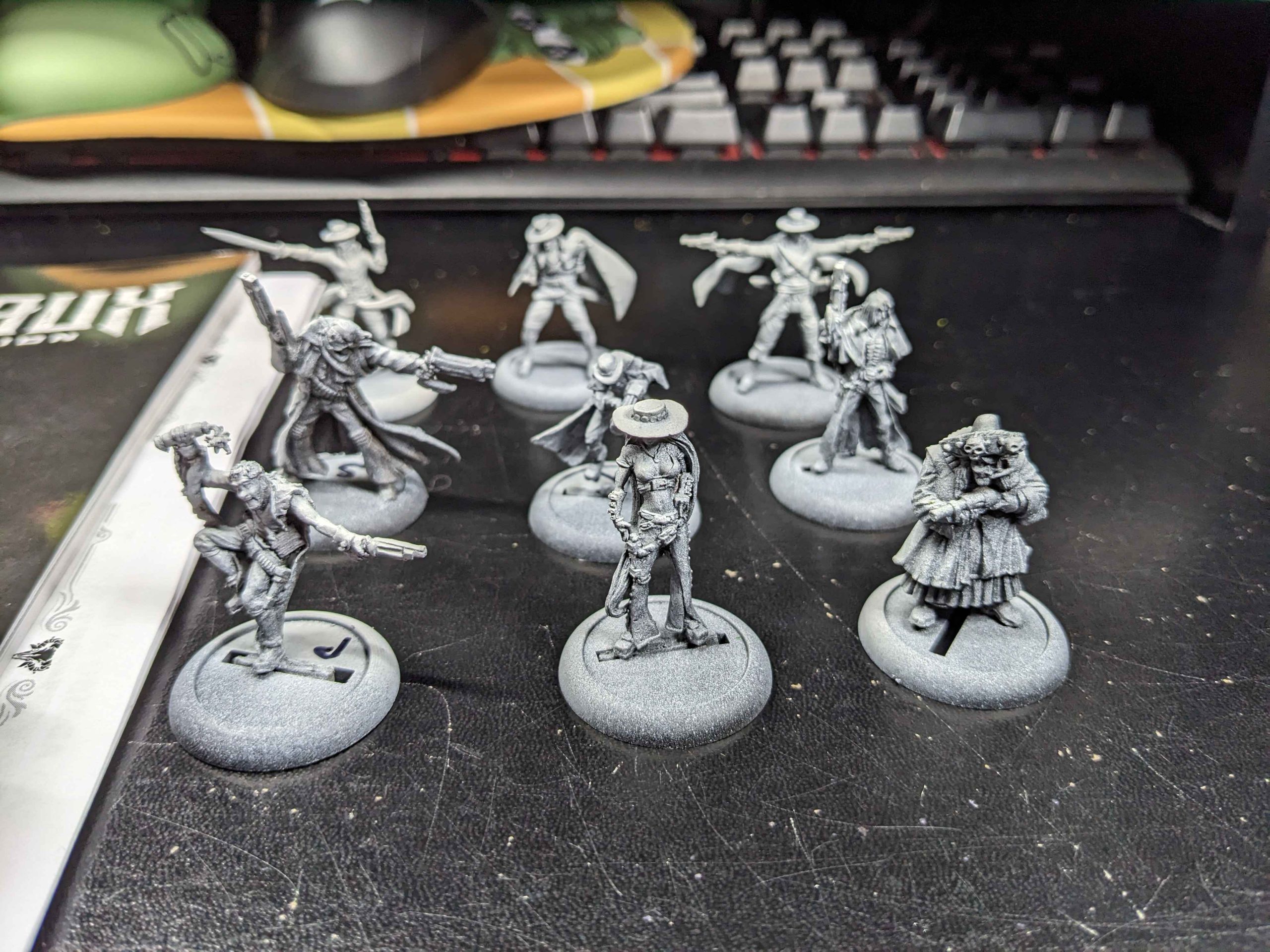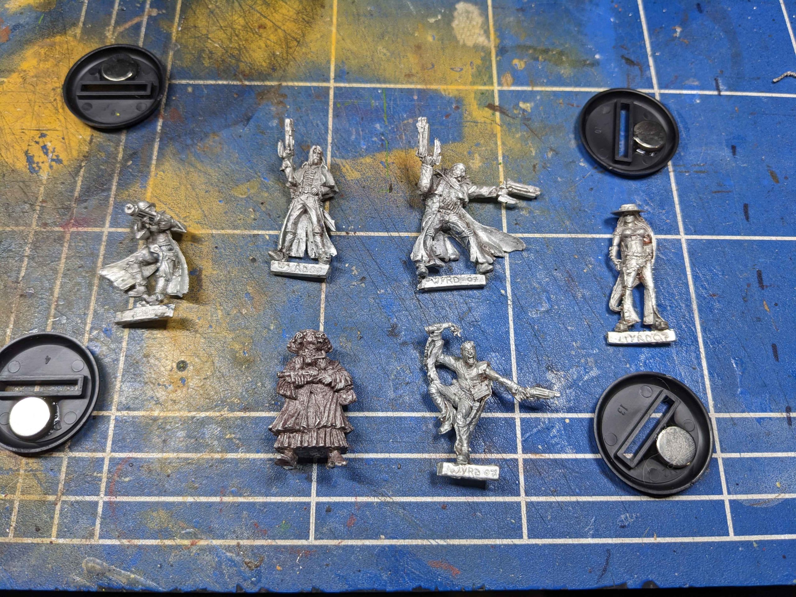 The game has changed massively since these first edition models were created and while I don’t know of anyone locally who plays, I would like them to be playable by the end of the project. The next step then was checking base sizes to see if any of them had been Old World-ed. Thankfully Wyrd make all the cards available through their website (including ones for models no longer supported in a section called Dead Man’s Hand). Only one model needs a new base and she was a bit of an anomaly in the first place, the only one I had to jump onto their discord to try and identify.