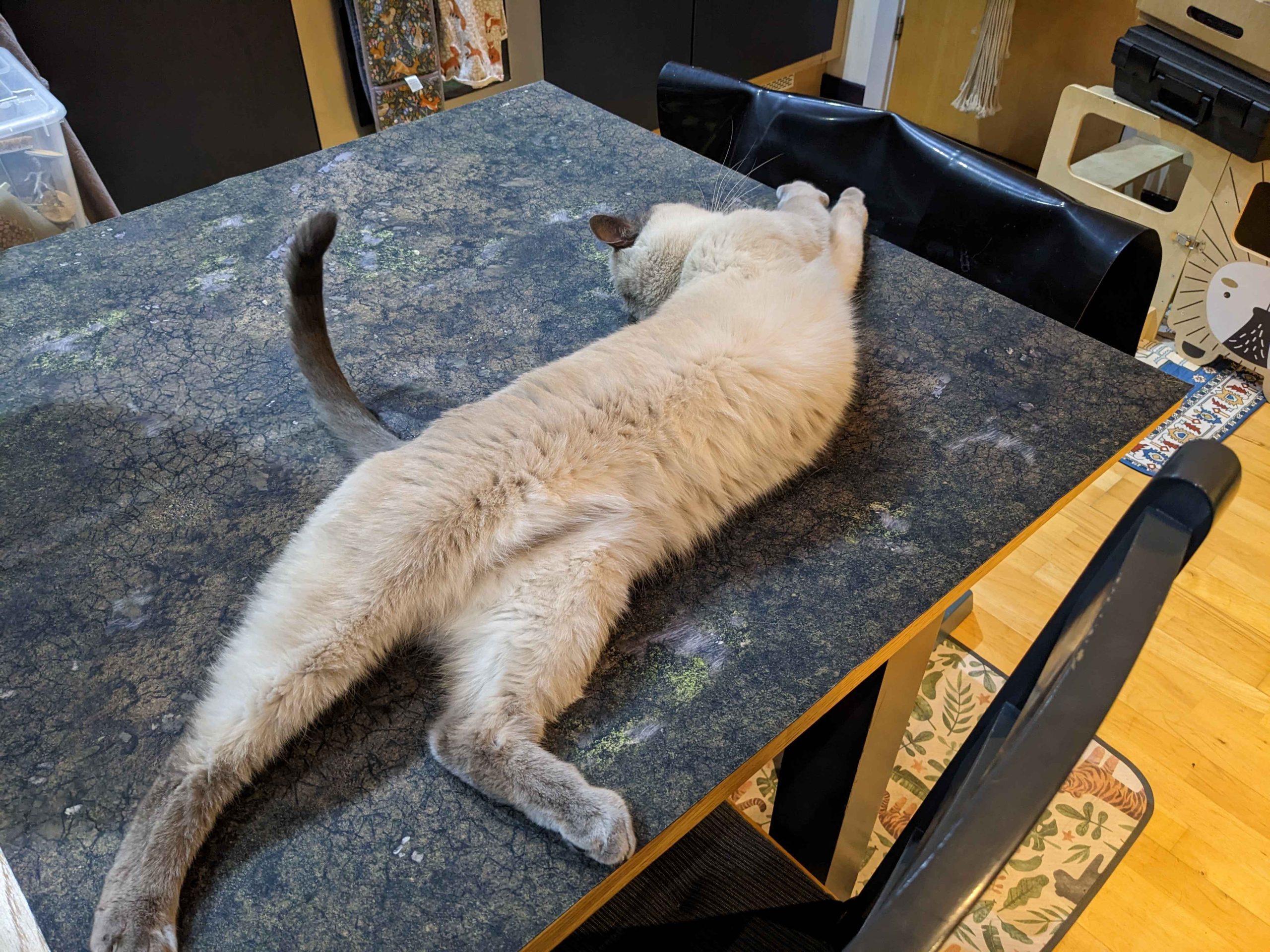 I didn’t take any photos of the game but I did take some of the fur friends 🙂 Pancake the cat and Maple the dog. 10/10 will play at their house again. Their human also plays Moonstone so we lucked into a good new friendship here.