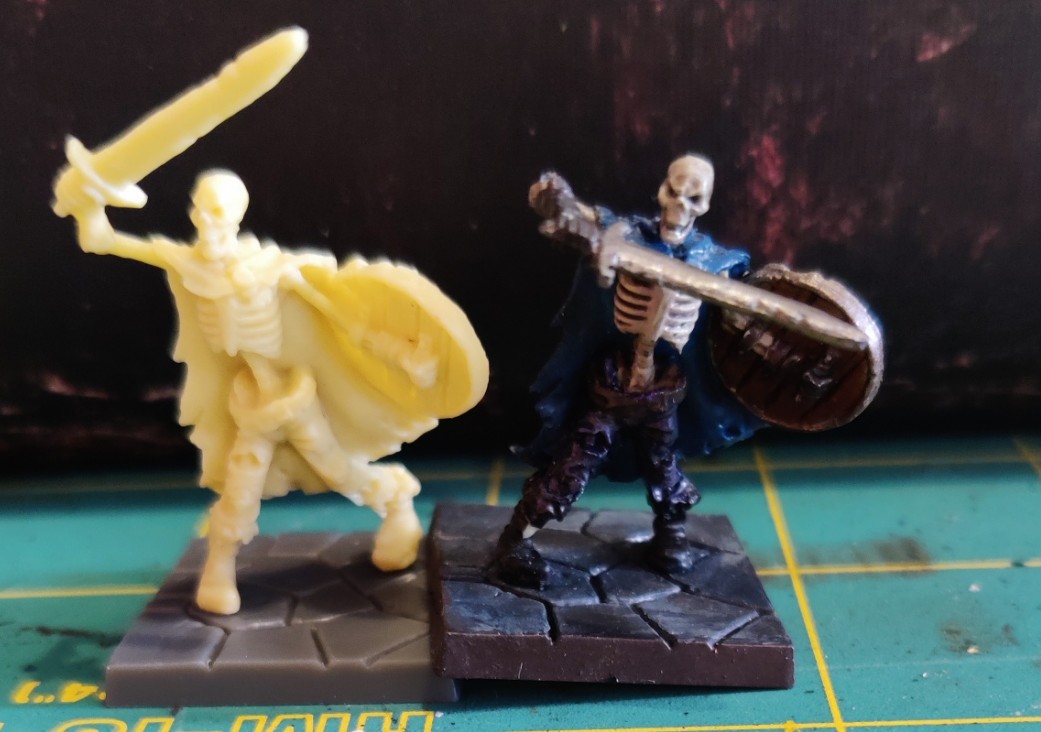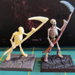 Then I noticed that a couple of minis had warped in the box and that my painted Skeleton Warrior had a broken arm. The arm was quickly fixed with some superglue. The warping I have fixed with some realy hot water, just put the bended part in it, the plastic gets soft enough so you can bend it back and then cool it of in cold water.