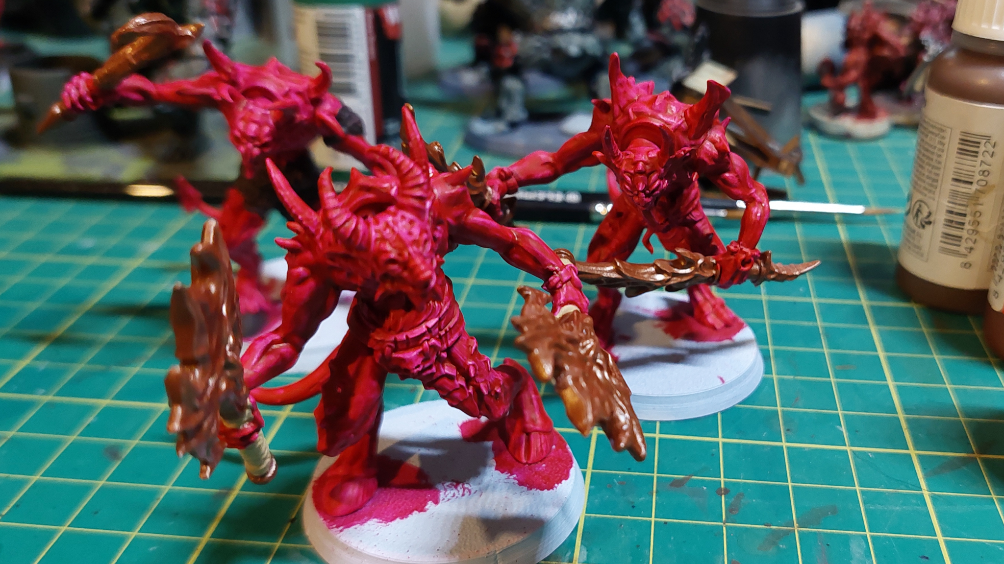 The abyssals are a bit awkward to paint since they’re using original army painted speed paints. They like to reactivate with light colours like the beige I paint the horns and claws.