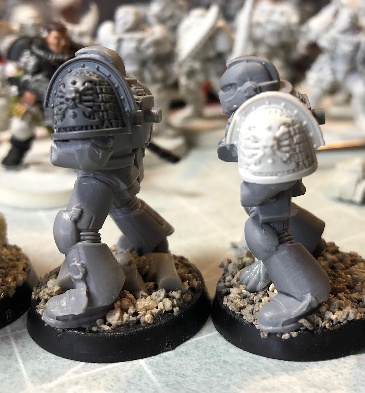 I certainly did not want three identical models in the command squad, especially armed with chainsword and grav pistol. One could remain as it was, but what to do about the other two copies? Here’s where things get interesting…