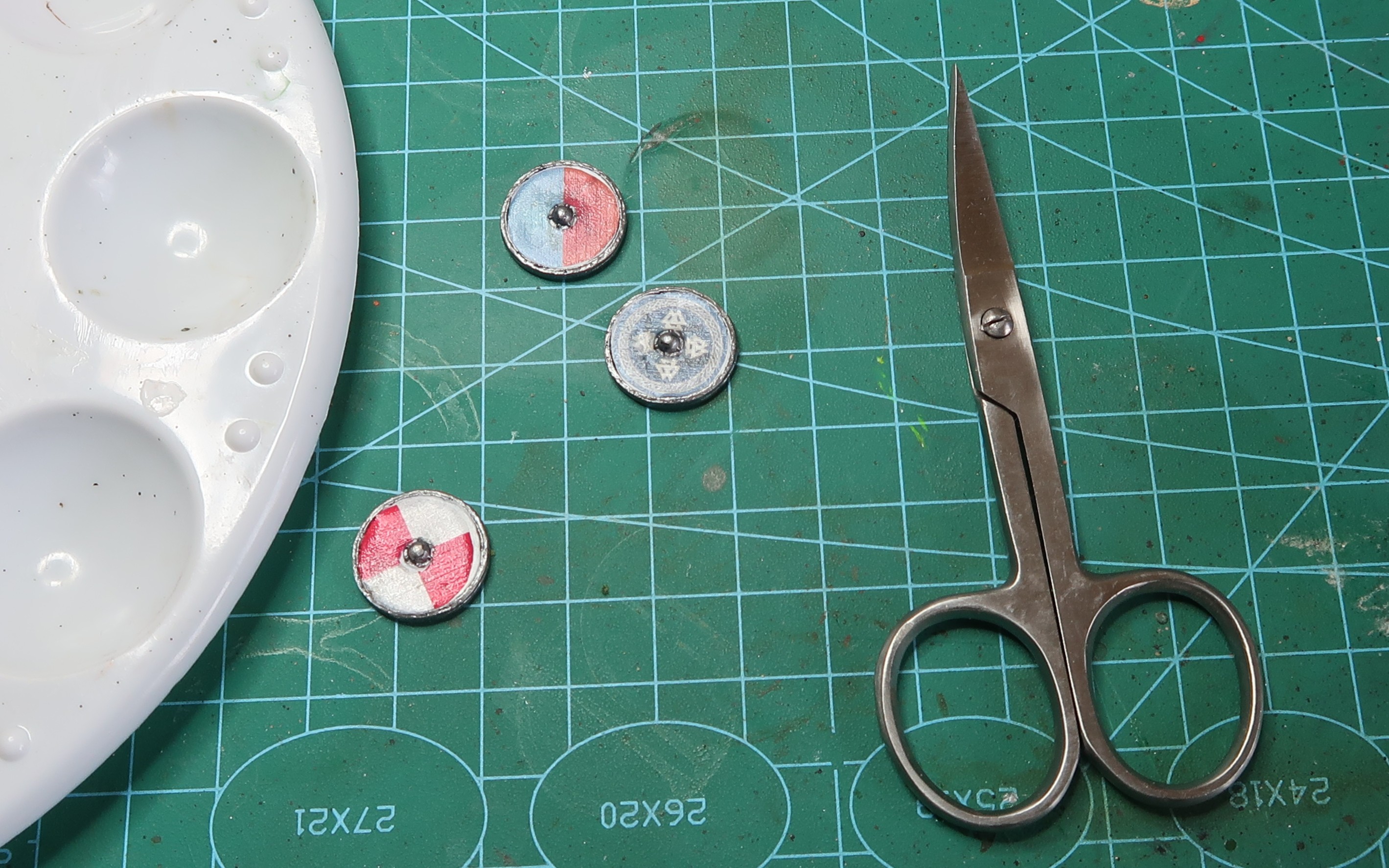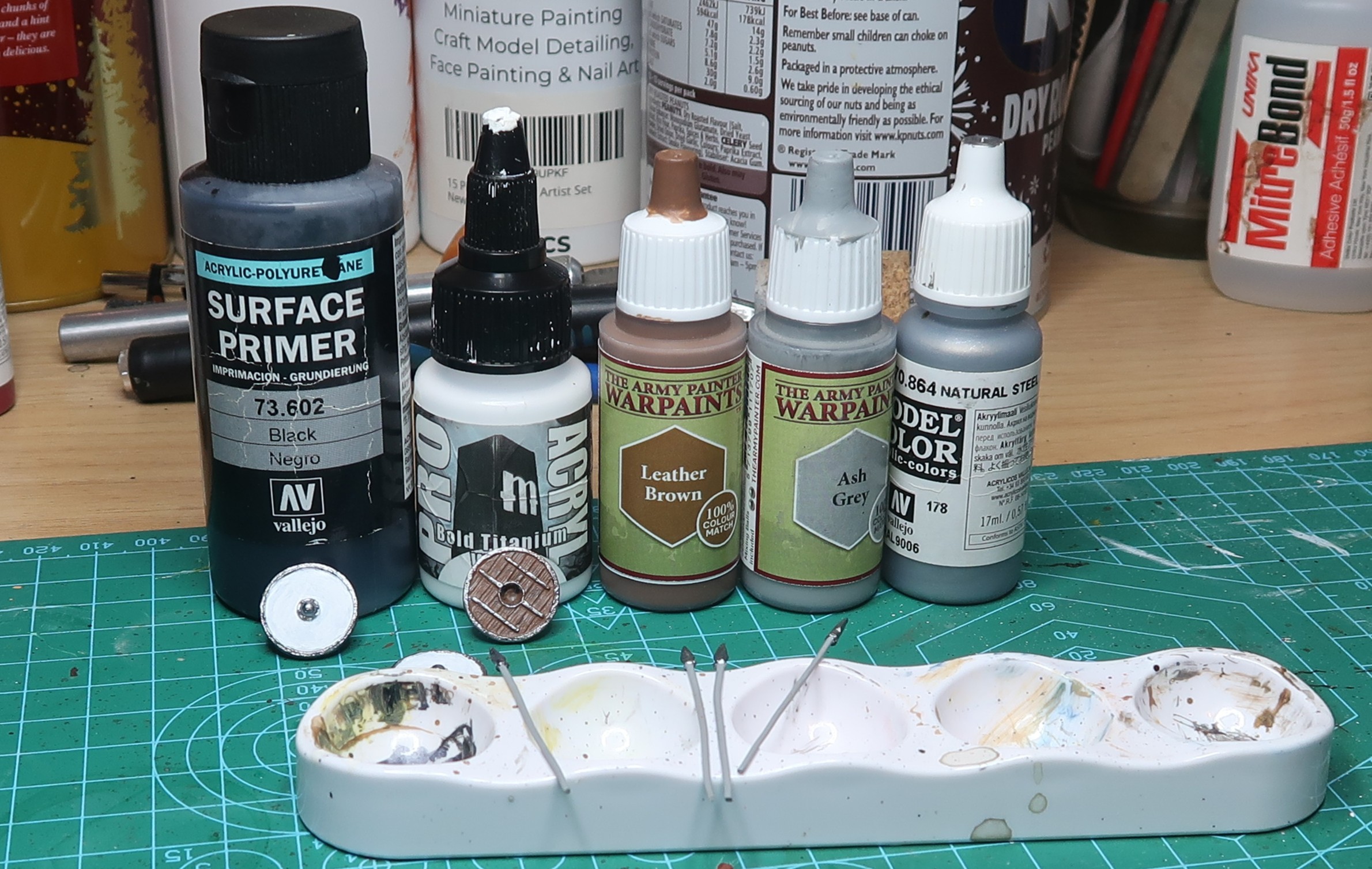I thought I would try using a wet palette for these two. Coming from an enamel paint background, water was always something I avoided and when I moved to acrylics I always used a blister pack as my palette. As I have all the tools and none of the skills I decided to give it a go, except for paints I know do not take water well.