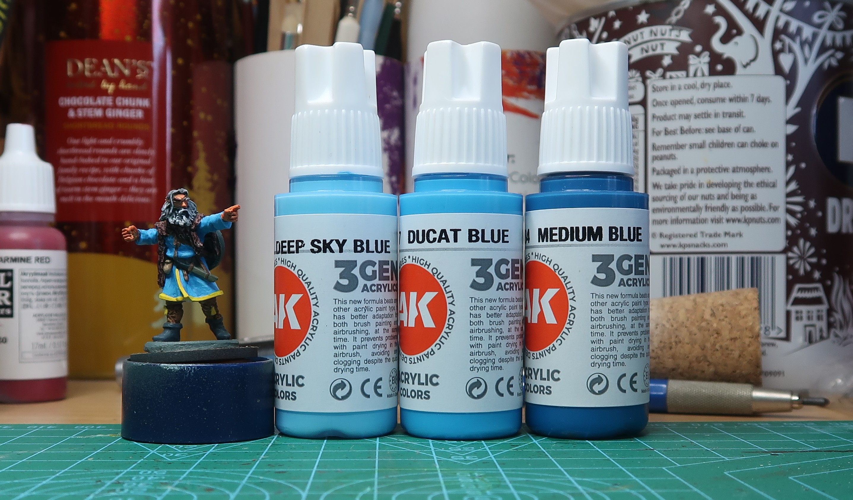 Harald’s cloak got a “triad” of colours, to see if it works like on the YouTubes, Medium Blue, Ducat Blue and Sky blue. I think we can all agree it is nothing like the YouTube masters do… but I will learn. As an aside all the AK pints are very new and bought for an Infinity project what has yet to be ballsed up (i.e. started).